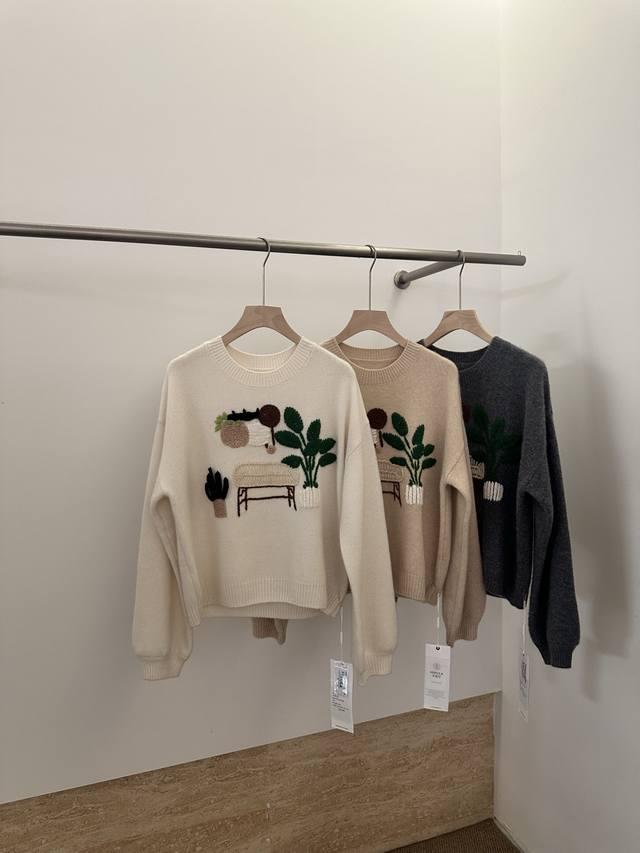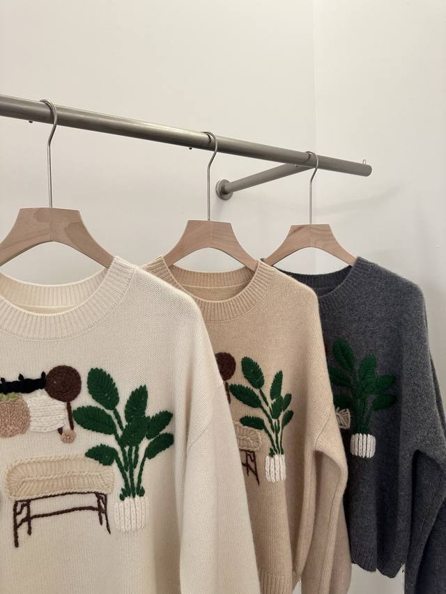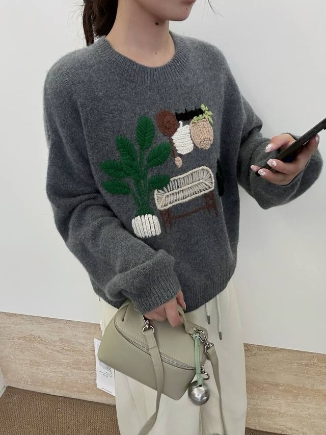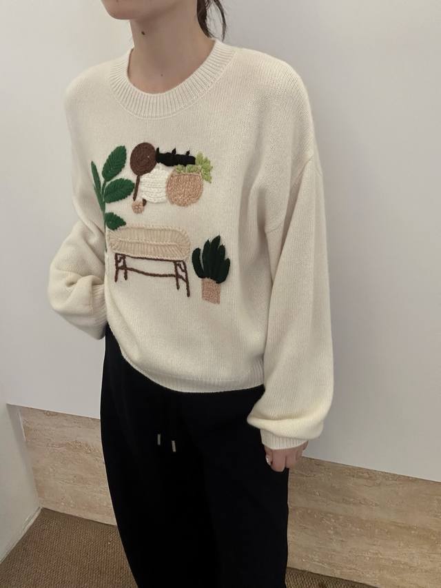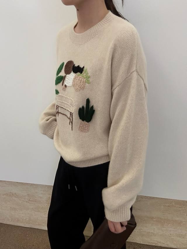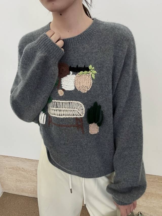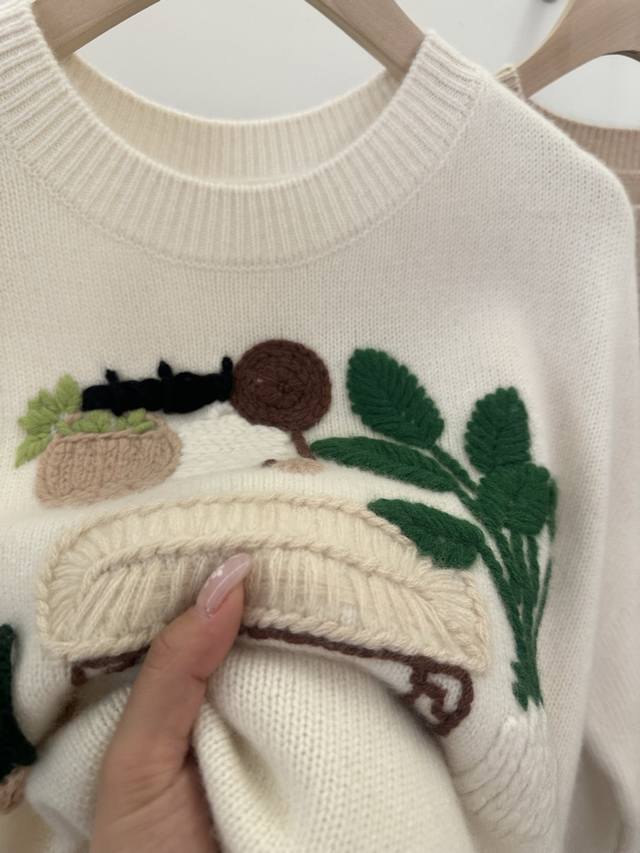 New pure cashmere round neck crochet long sleeve One size
