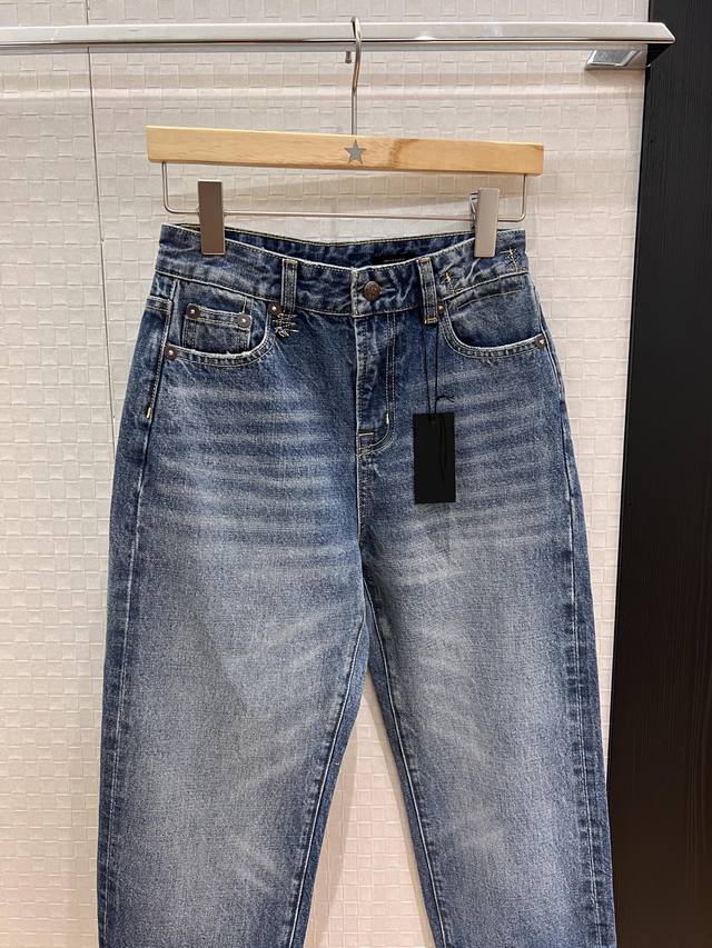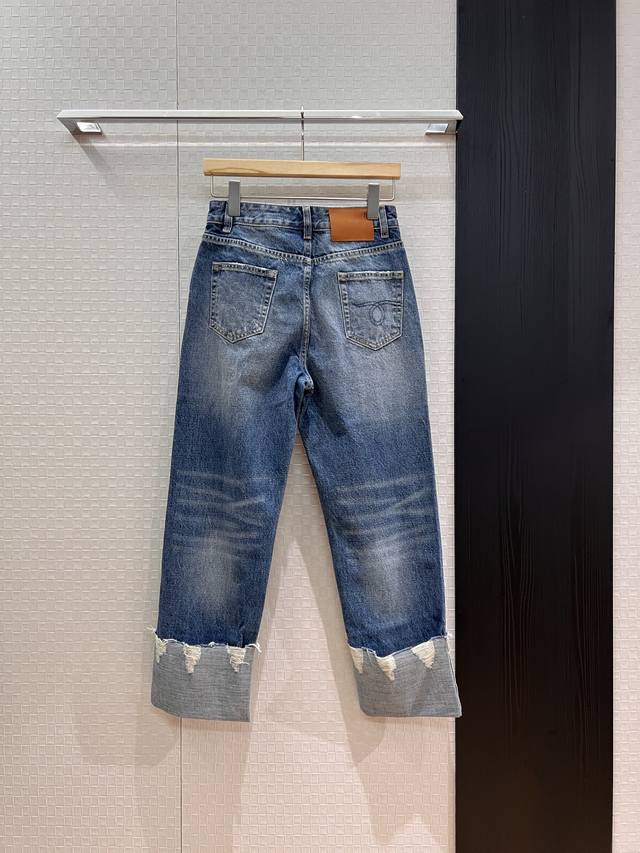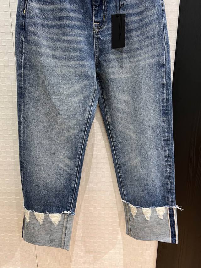 New R13 distressed cuff jeans with folded-back design, cropped length, washed, with hardware accessories, slim fit, versatile, size 26-29.