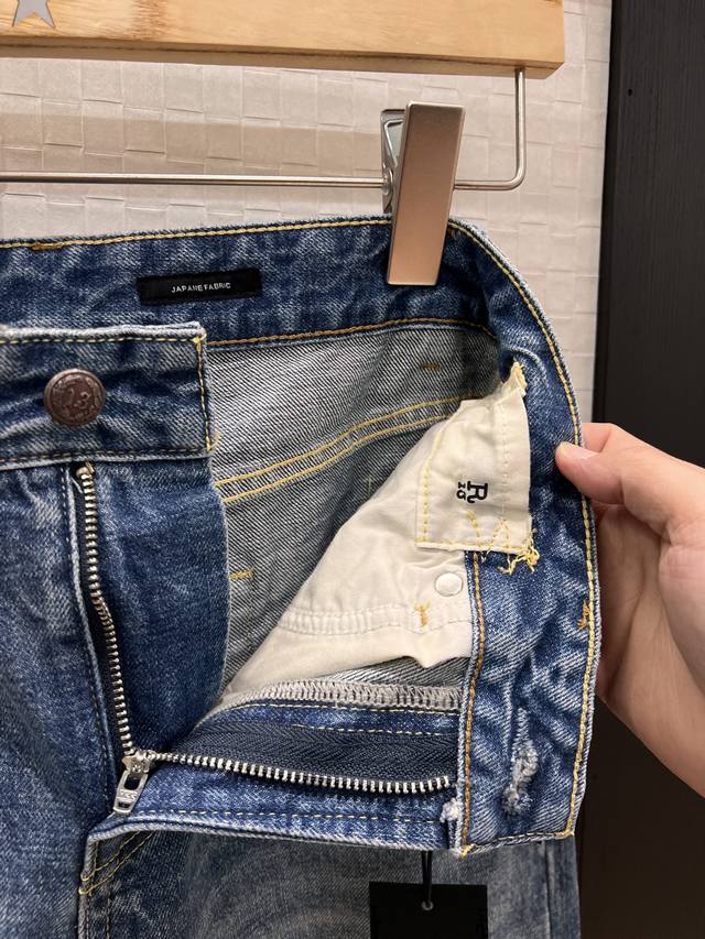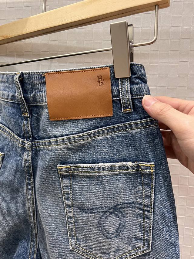 New R13 distressed cuff jeans with folded-back design, cropped length, washed, w