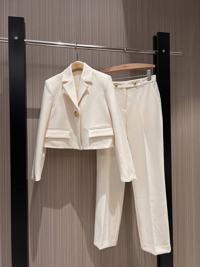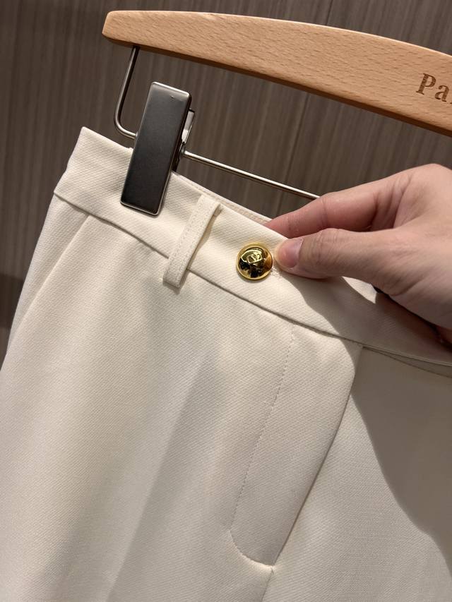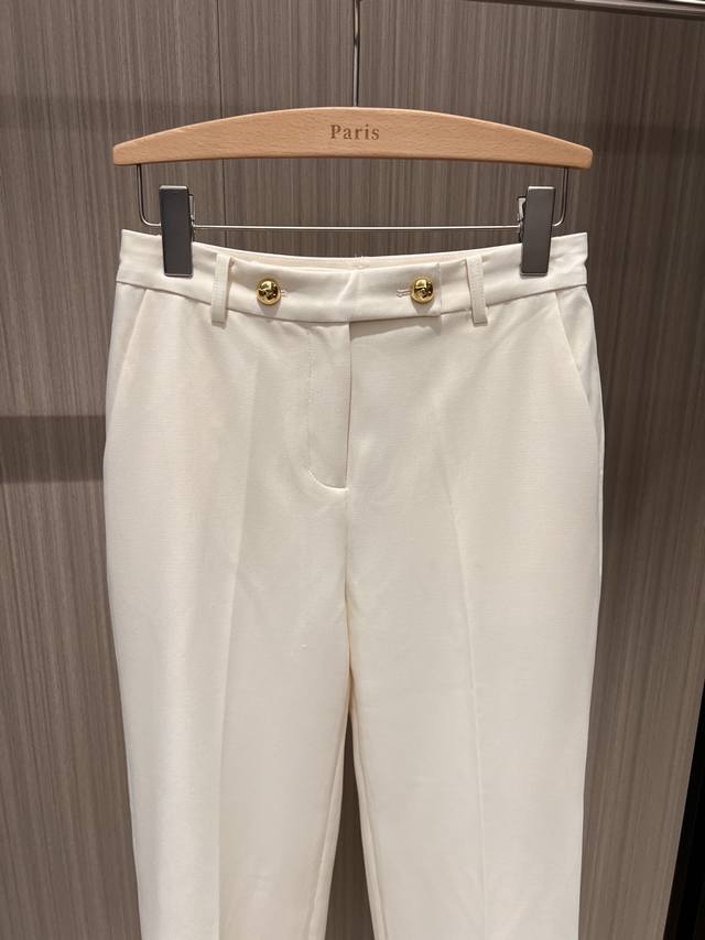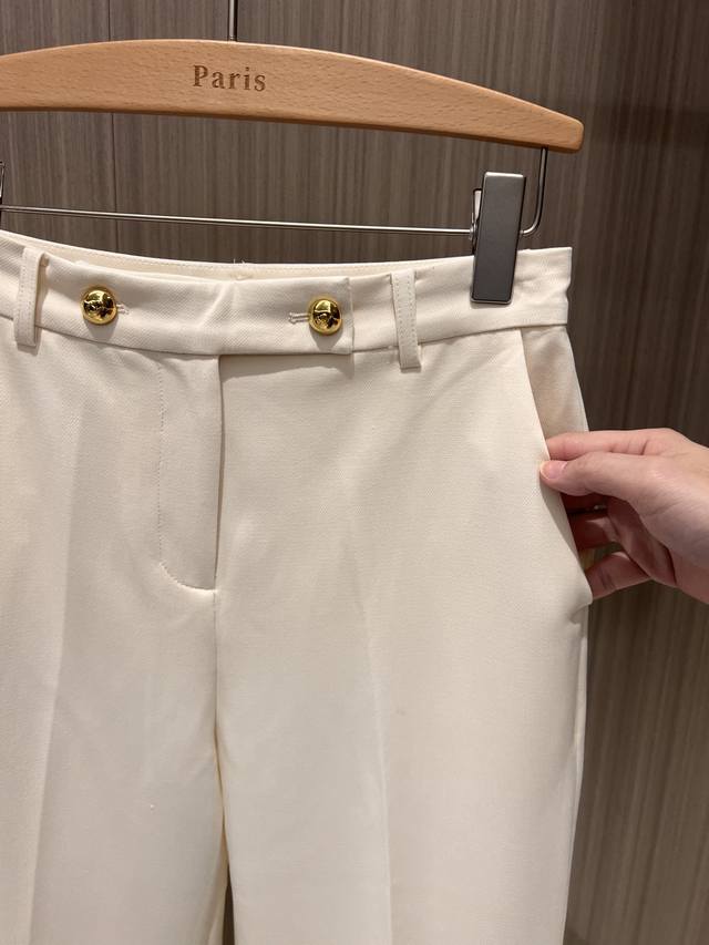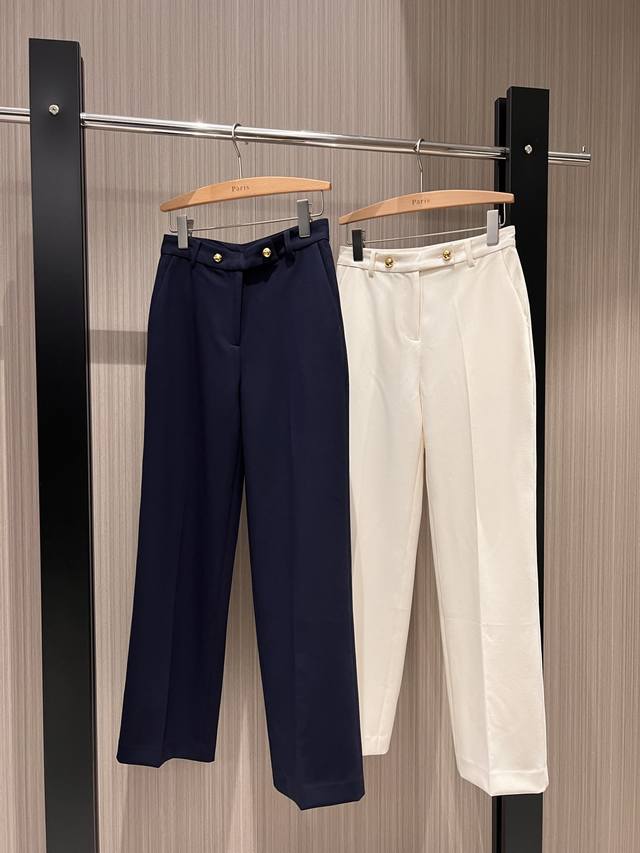 New recommended minimalist two-button straight-leg trousers casual trousers with open mold Logo gold button can be paired with the same jacket for commuting, versatile and casual temperament, neat and capable dark blue apricot color Sml