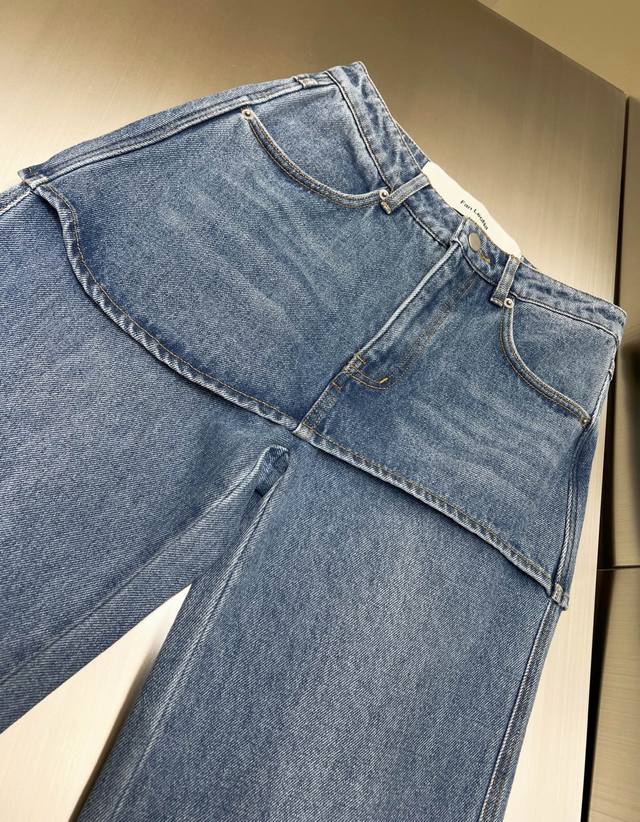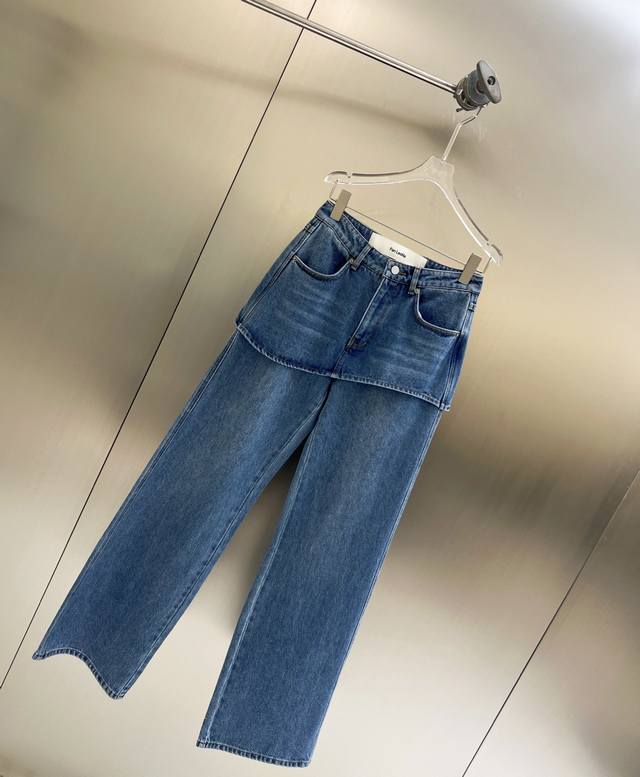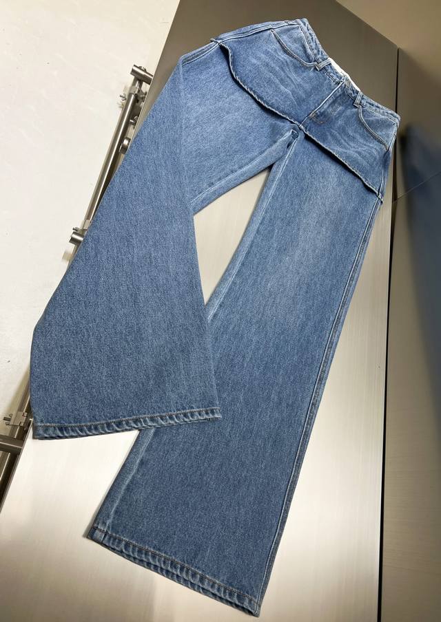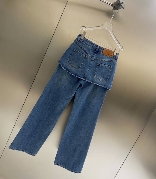 2025 Fall/Winter new faux two-piece wavy straight-leg denim trousers. Thinner, upgraded version. Stylish, versatile, and comfortable to wear year-round. Made of denim and cotton fabric with a fashionable wavy cut. Hem stitching. Lazy wide-leg silhouette and floor-length length create a long, straight look. Faux two-piece culottes with a sand-washed, distressed finish. Casual and stylish styling creates a relaxed, casual feel suitable for everyone.