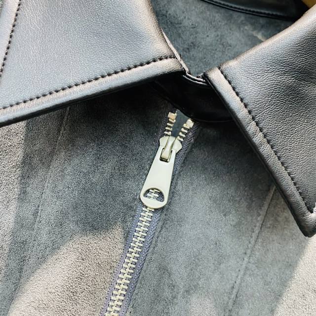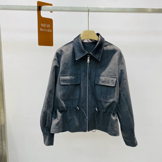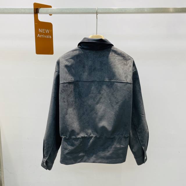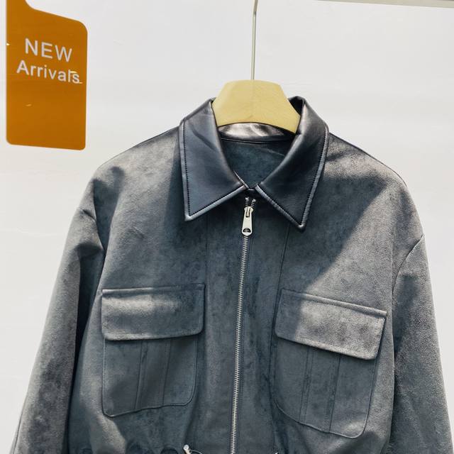 New Retro Patchwork Leather Collar Suede Chic and Versatile Jacket Top Smlxl DDD