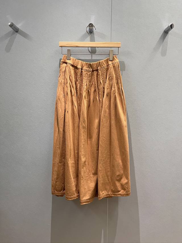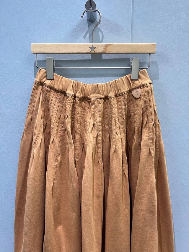 New retro style, distressed, washed, heavily crafted, striped, pleated, elastic waist, long skirt, oversized hem, pockets on both sides, logo leather label decoration, S-Xl