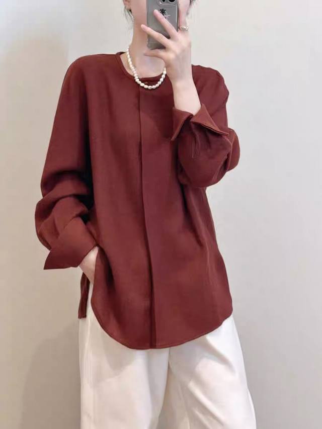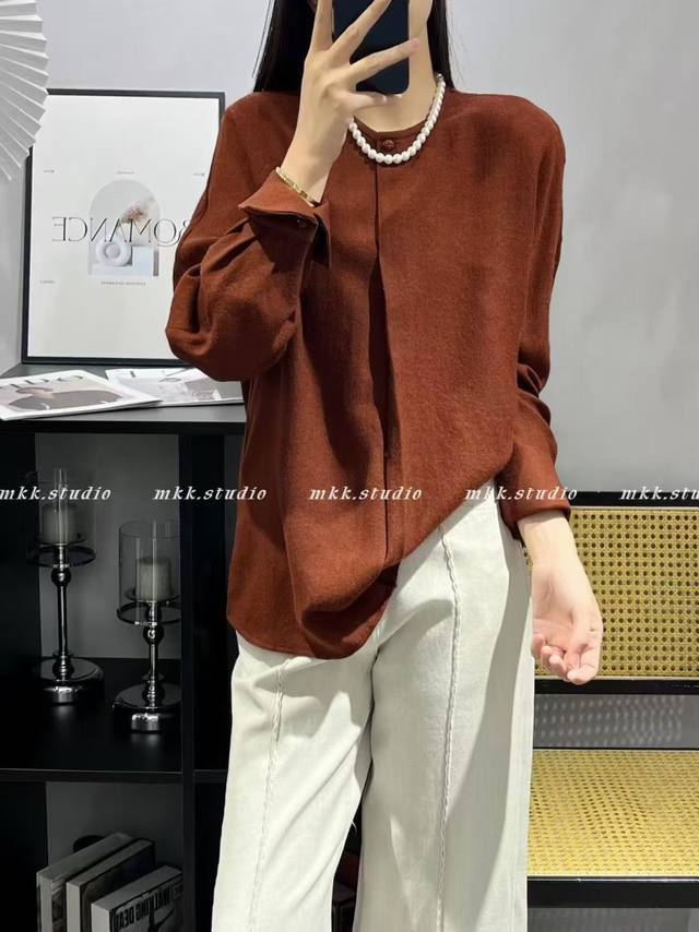New round neck single button 100% wool top, S-Xl
