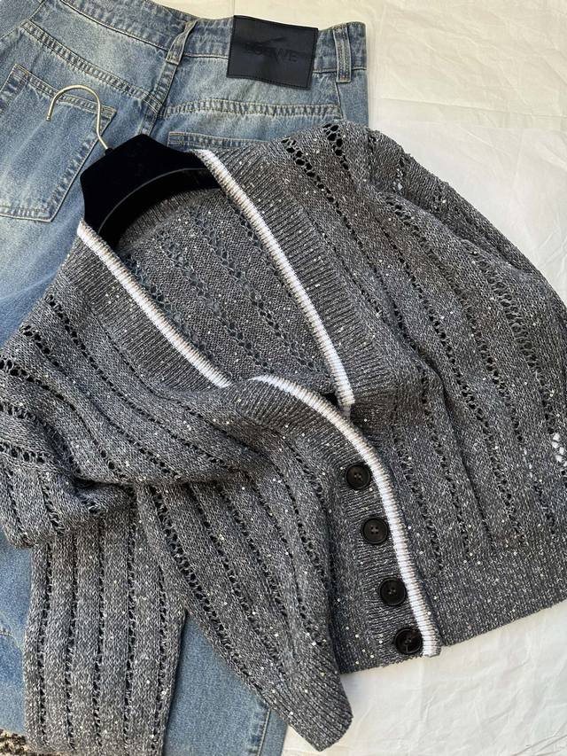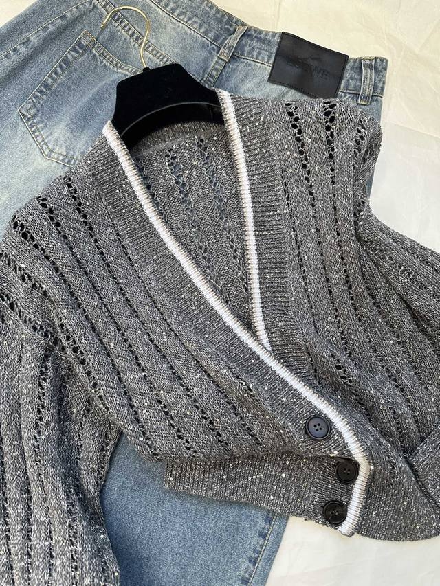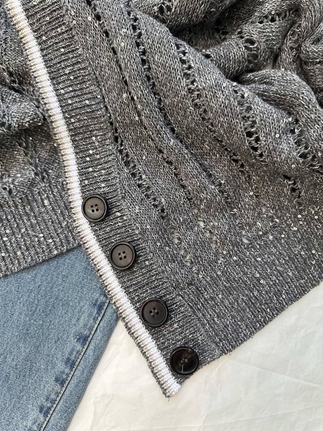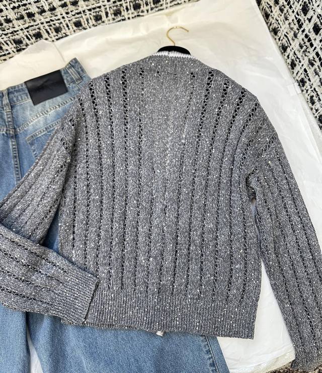 New spot British style V-neck mesh hollow knitted cardigan Sml DDD