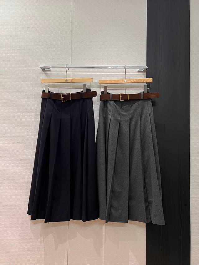 New style belted pleated asymmetrical long skirt/half skirt, preppy style, casual, fashionable, youthful, versatile, elegant, dark blue/dark gray, S-XL DDD