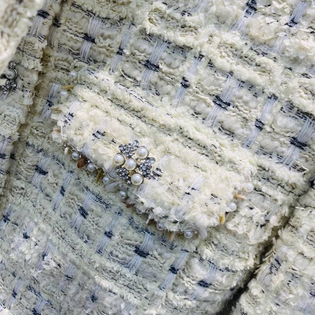 New Style Lace-up Pearl Rhinestone Fashion Chanel Style Wool White Goose Down Jacket/Top Sml DDD
