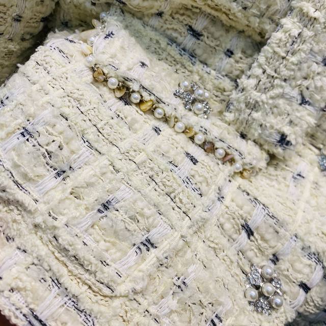 / New Style Lace-up Pearl Rhinestone Fashion Chanel Style Wool White Goose Down Ja