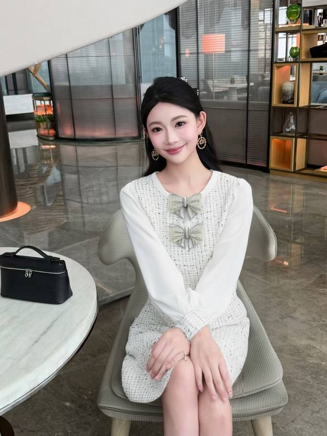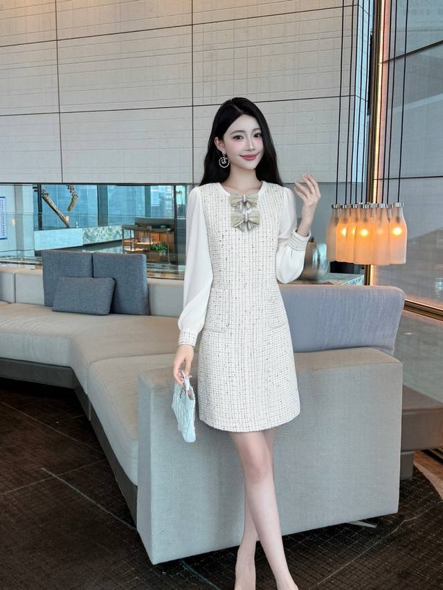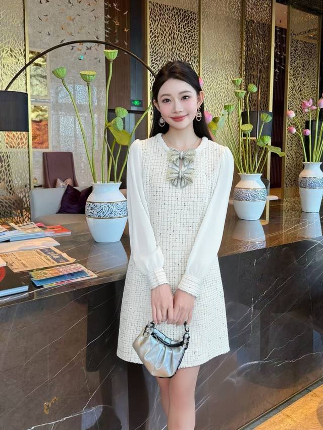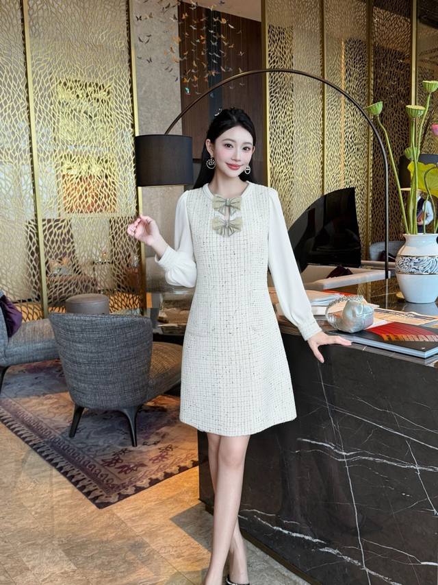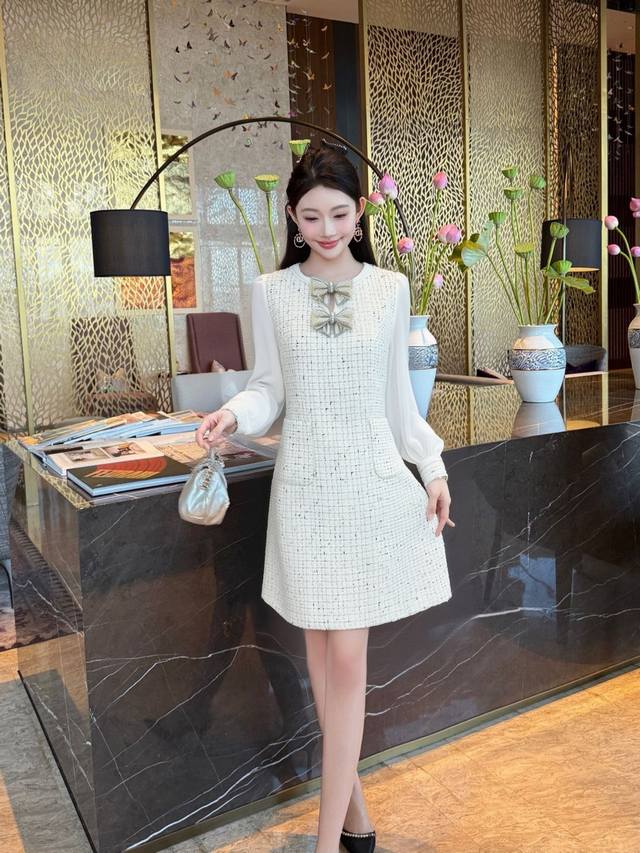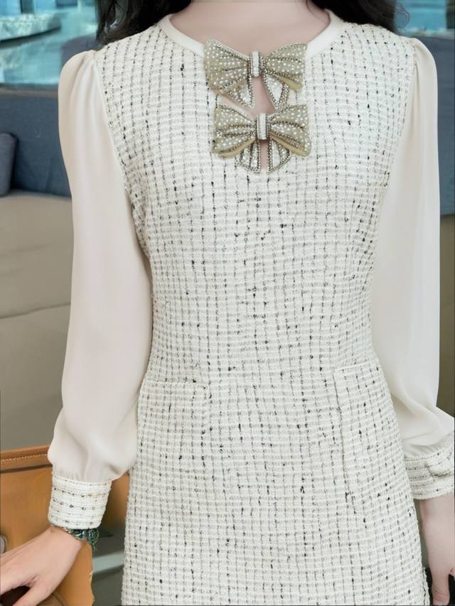 New style of Chanel style celebrity series, popular model, customized by Huajia, heavy bow Chanel fabric, high-end and hard-core version, super slimming, main style