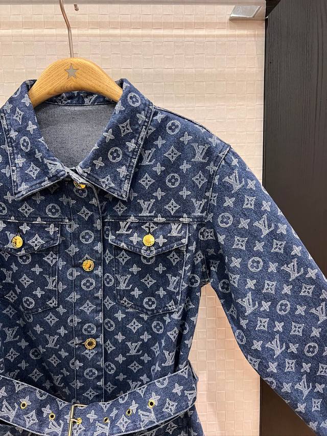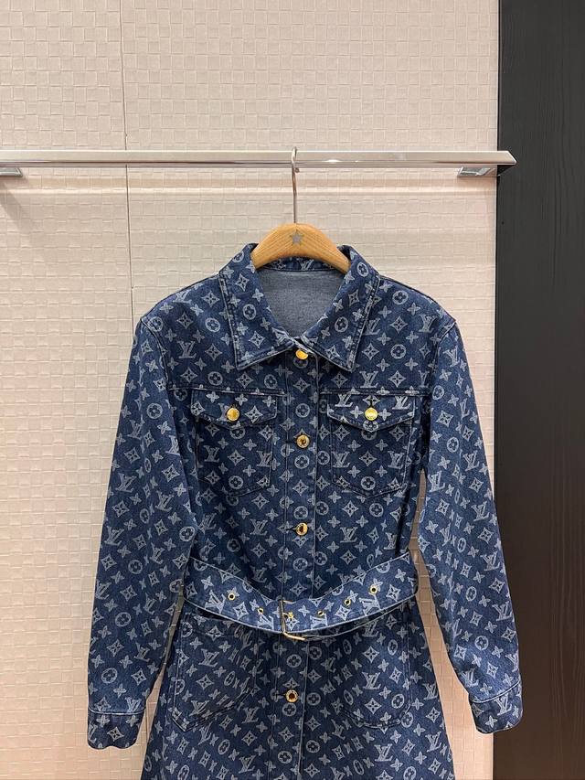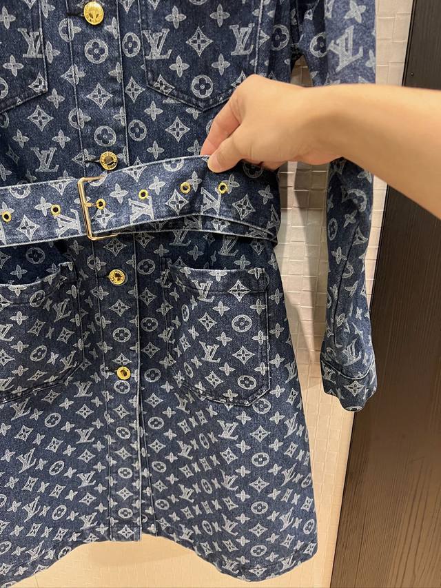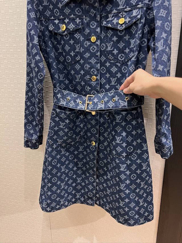 New style old flower lapel long-sleeved denim dress with chest pocket decoration and belt buckle design. Hardware accessories mold opening. Casual and age-reducing. Versatile and not picky. Sml