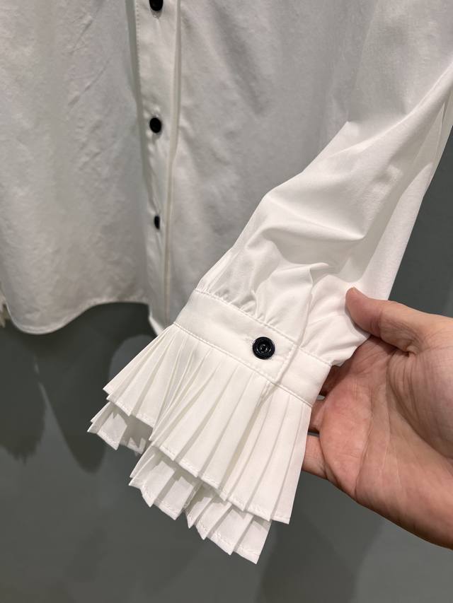 / New style pleated stand-up collar double lace shirt with bow decoration pleated