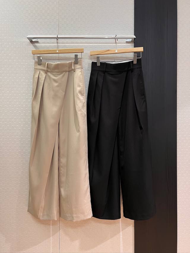 New style recommendation Asymmetrical wrapped trousers Wide-leg casual trousers Pleated design Lazy and fashionable Aura is fully open Can be paired with the same suit Sheepskin blended black apricot Sml