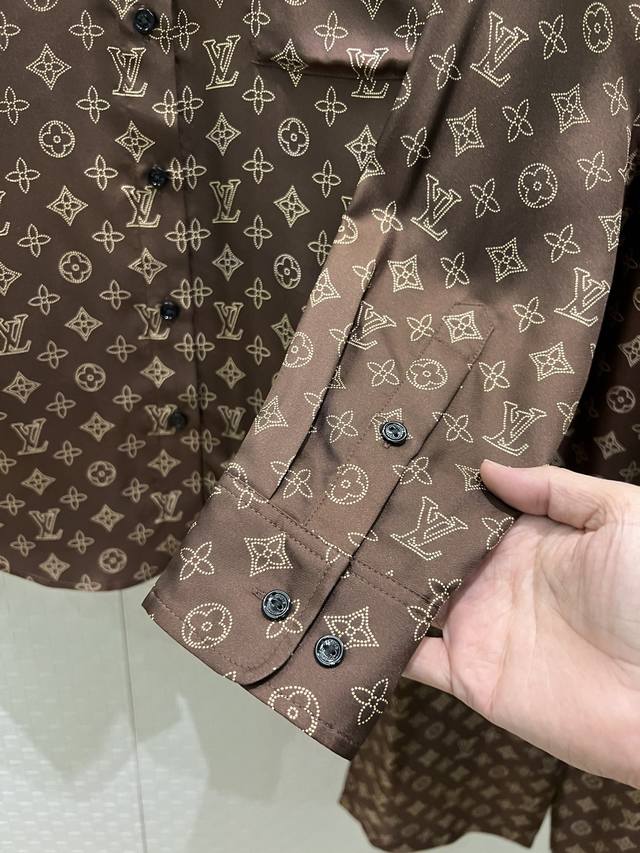 New style shirt and pants, same style as Song Qian, classic monogram print, brown silk twill shirt, floral print, wide-leg silk pants, fashionable, versatile, elegant, and relaxed. Drawstring belt design. Can be worn as a set or separately. Sizes S-XL