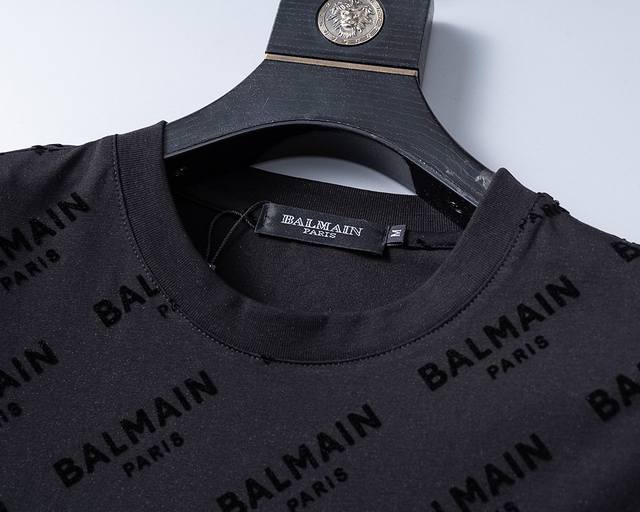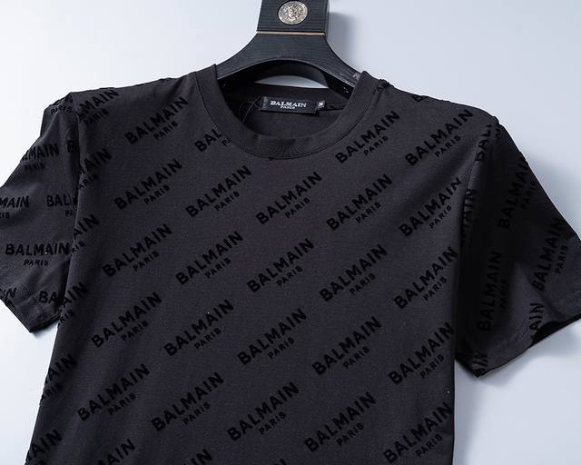 New T-shirt with flocking printing, exquisite workmanship, synchronized with the official website, classic and fashionable, M-3Xl black