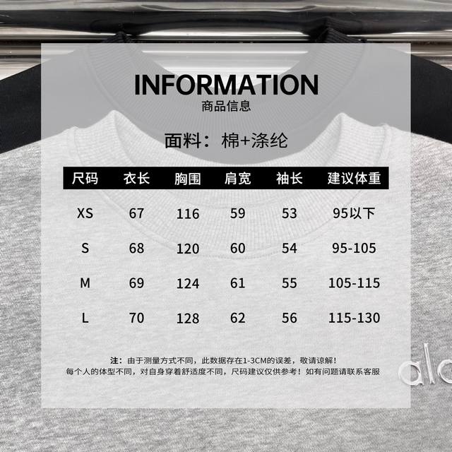 / Newest Alo 25New Round Neck Brushed Long Sleeve Sweatshirt Color: White Black G