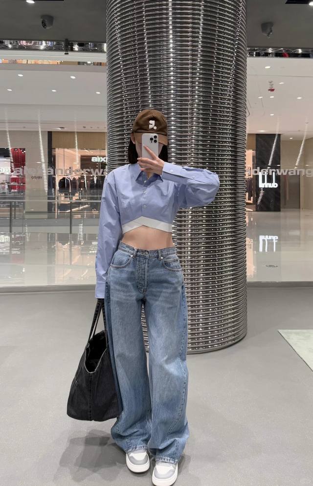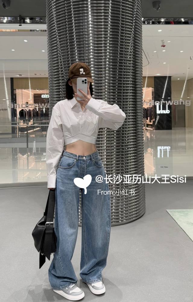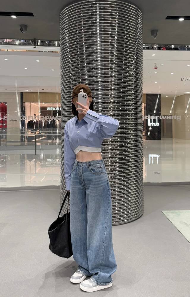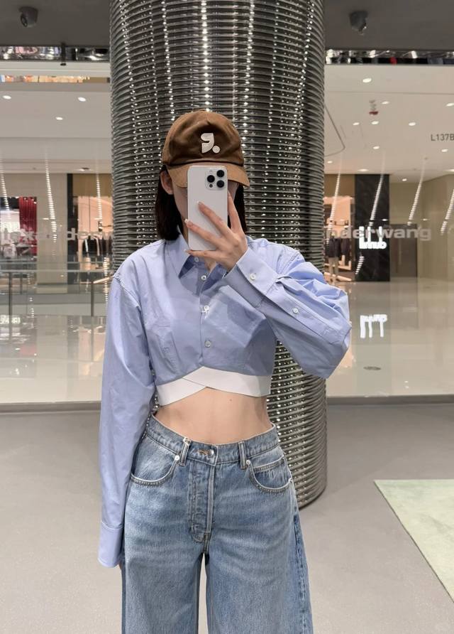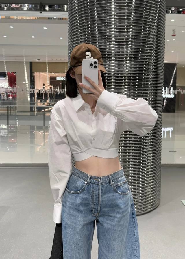 Newest Aw 25New Elastic waist long sleeve shirt Color: White Blue Size: Sml