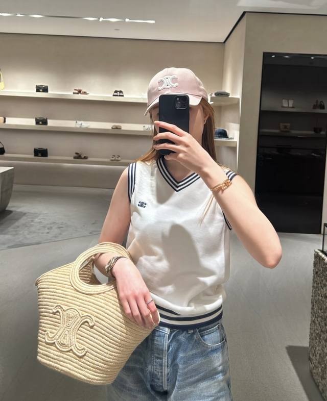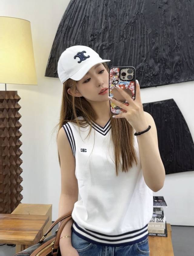 / Newest Ce 25New Arc de Triomphe embroidered V-neck knitted vest Size: Sml DDD