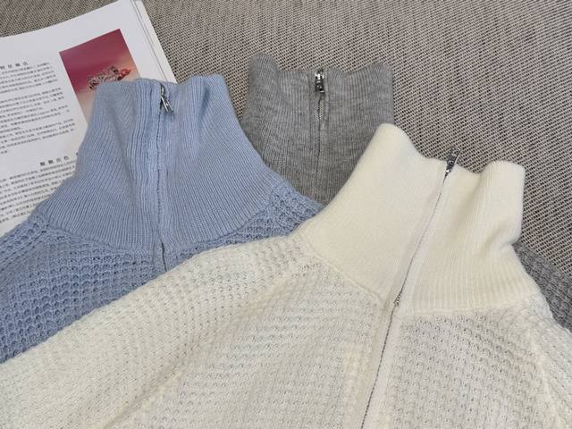 The top is a stand-up collar with a half-zipper design, waffle texture, and brand patch on the back hem. The fabric is soft and elastic, giving a slim and lazy feeling. The atmosphere and sense of luxury are overflowing~ The skin-friendly and soft craftsmanship gives a gentle and intellectual feeling
