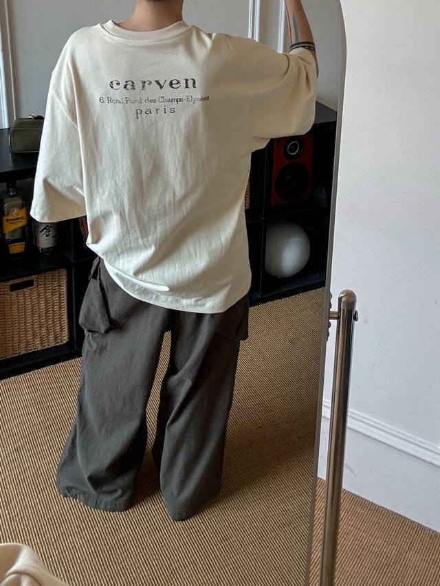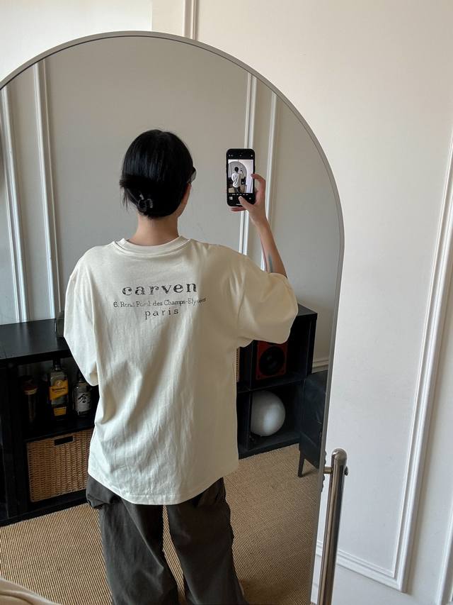 Carven 25 New Casual Distressed Letter Print Cotton Loose T-Shirt Sml