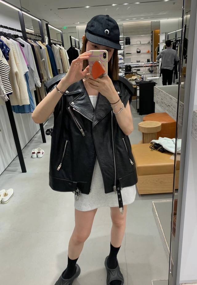 Cenlin New Retro Motorcycle Style Soft Lambskin Slant Lapel Zipper Genuine Leather Quilted Vest Sml
