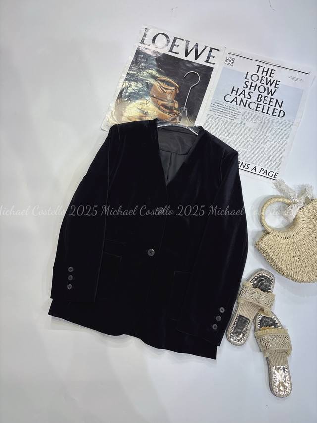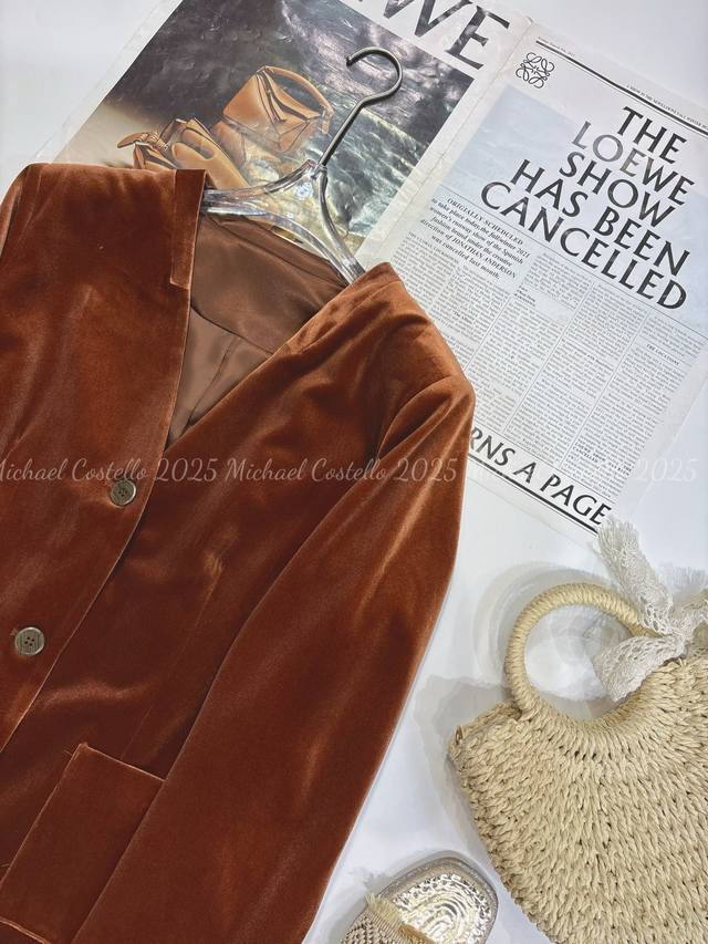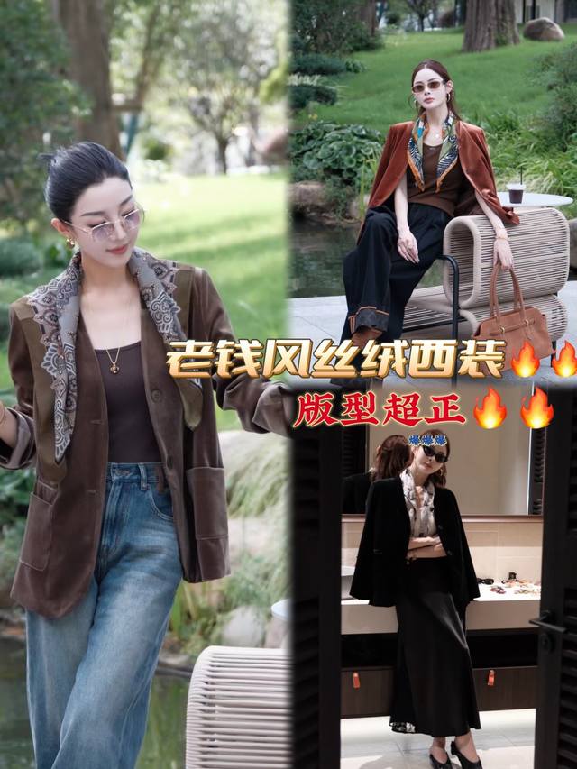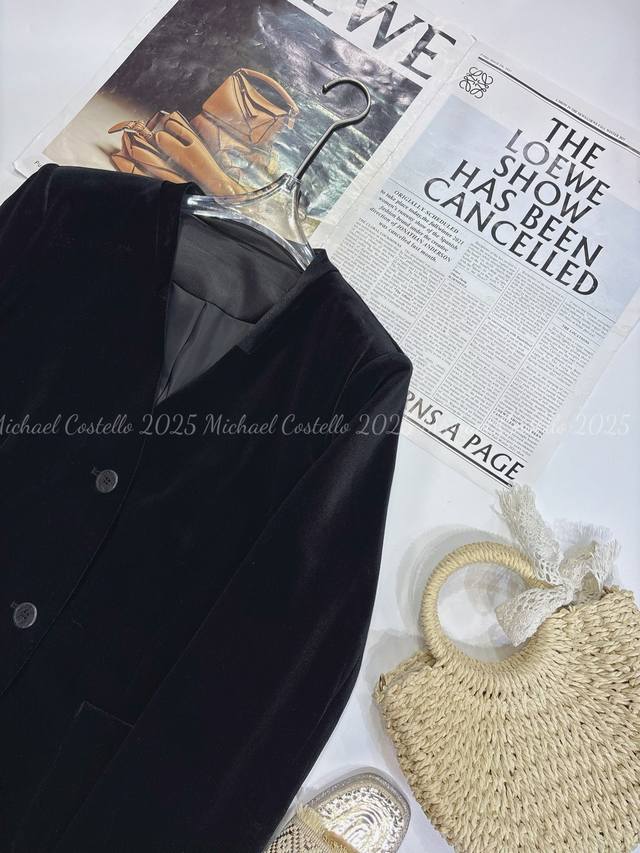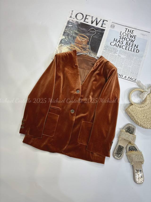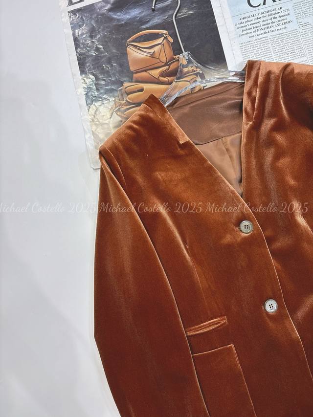 Old money style velvet suit jacket, high-end feel, velvet has its own luster, noble and advanced, loose silhouette, hides flesh and makes you look thin, double-breasted design, classic and neat, velvet fabric is delicate and soft, easy to hold and loose, high-end and fashionable, black, coffee and persimmon red, Smlxl