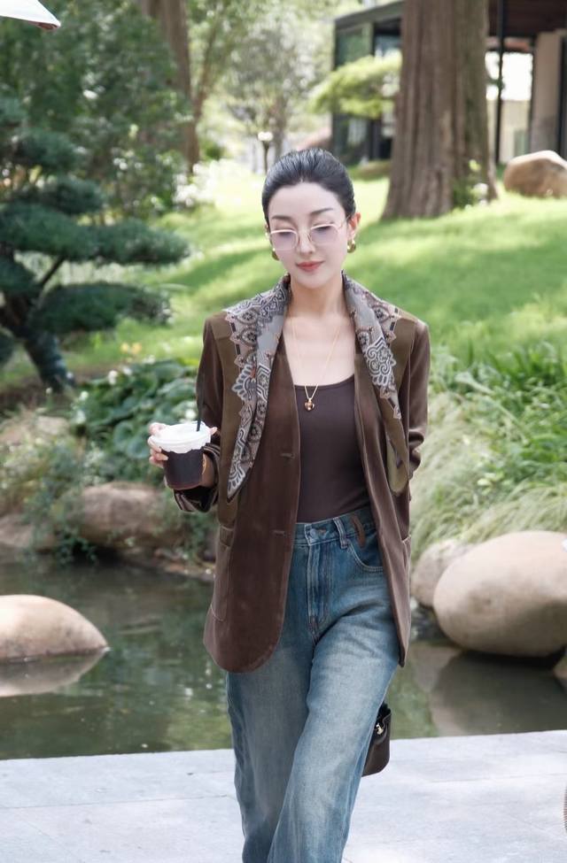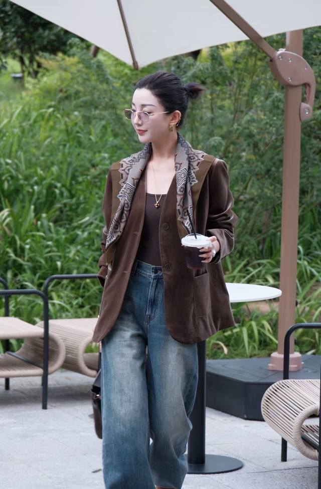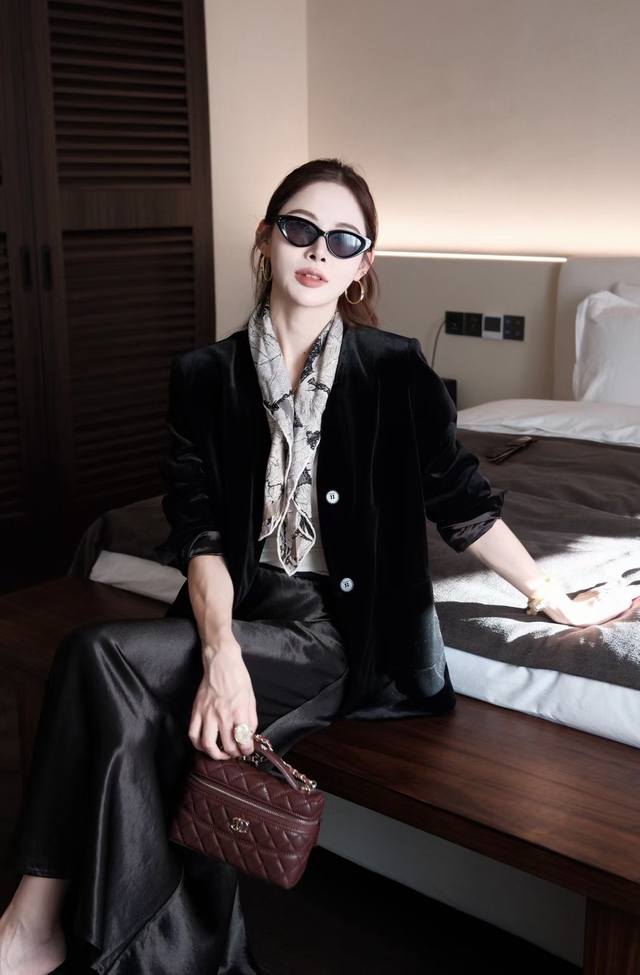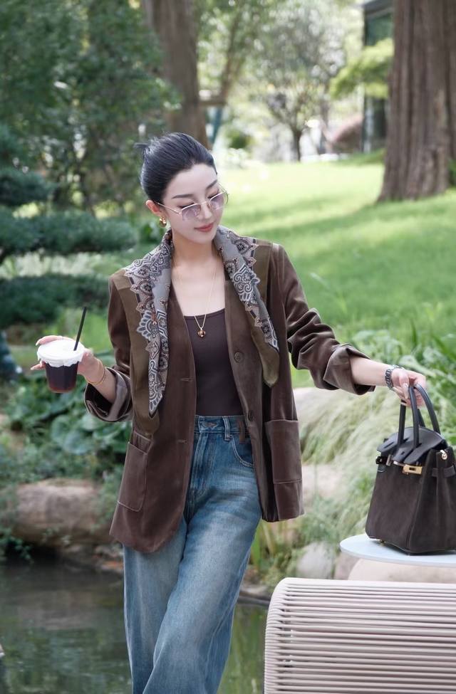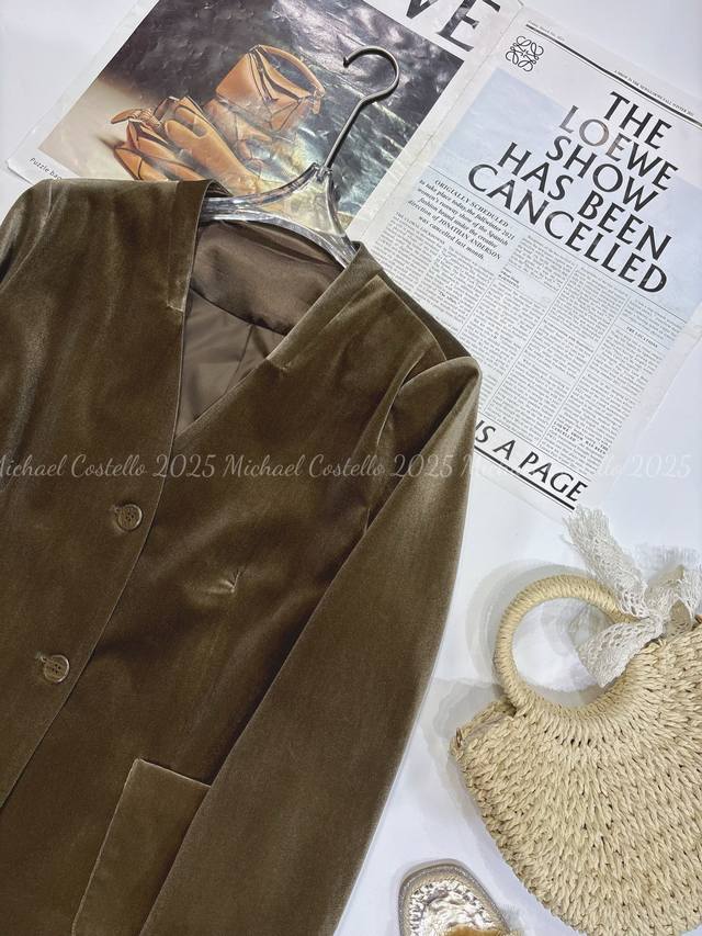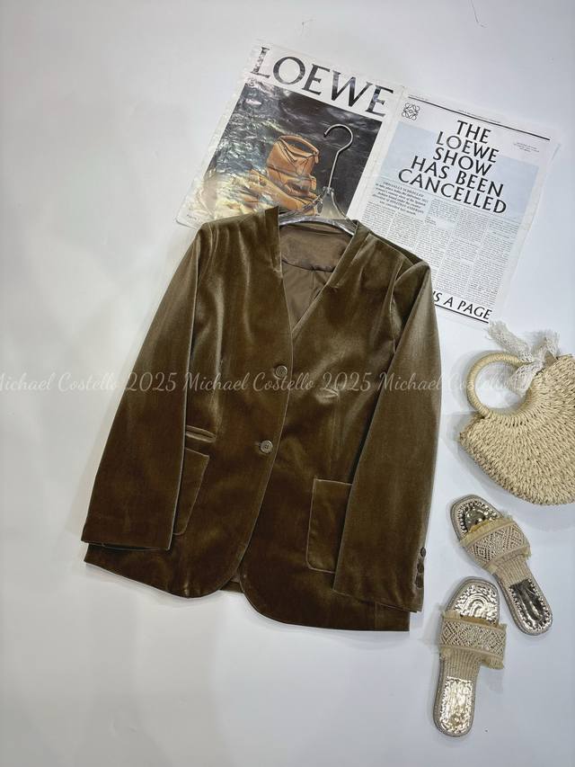 Old money style velvet suit jacket, high-end feel, velvet has its own luster, noble and advanced, loose silhouette, hides flesh and makes you look thin, double-breasted design, classic and neat, velvet fabric is delicate and soft, easy to hold and loose, high-end and fashionable, black, coffee and persimmon red, Smlxl