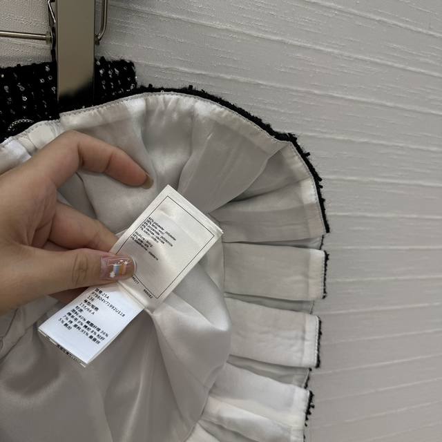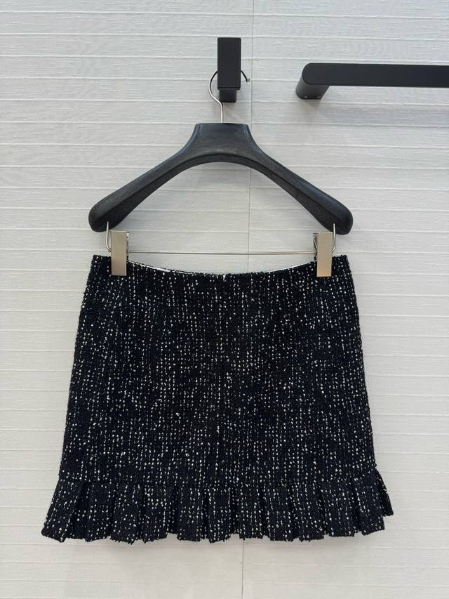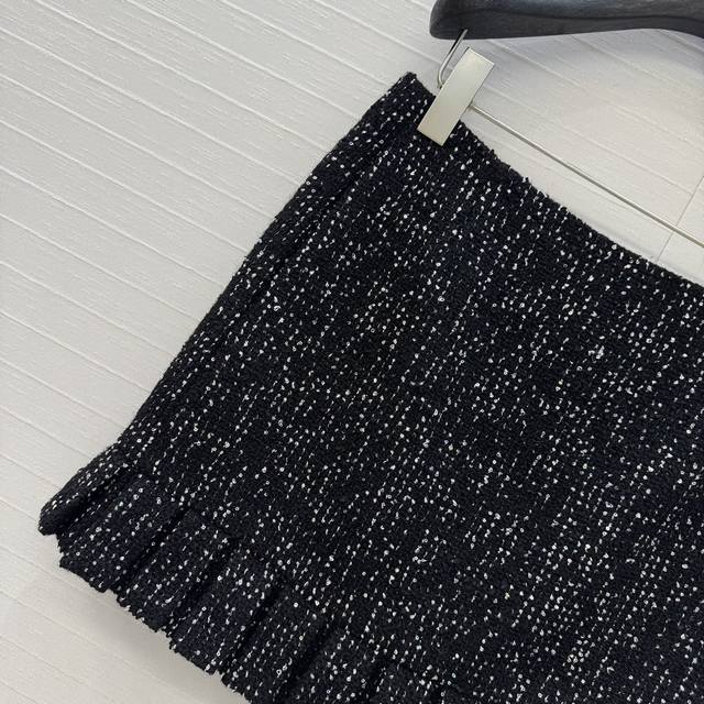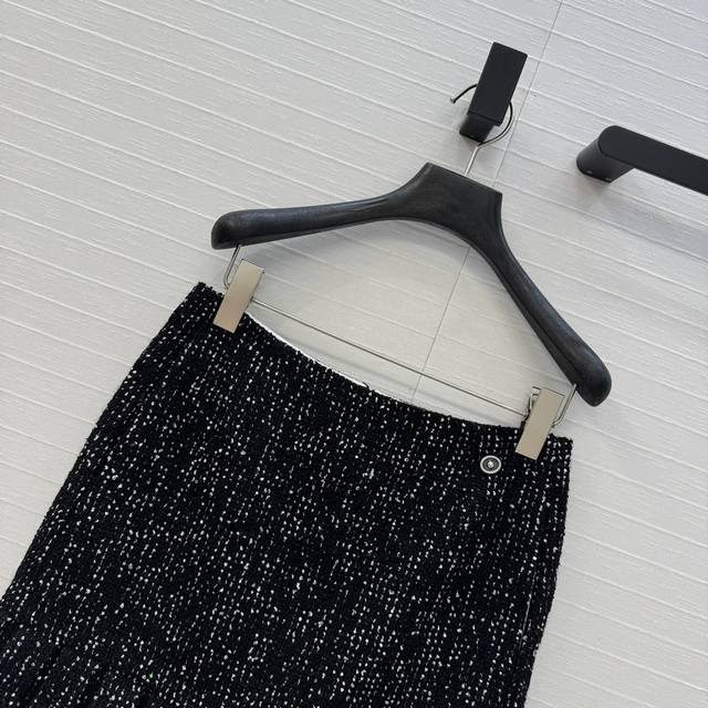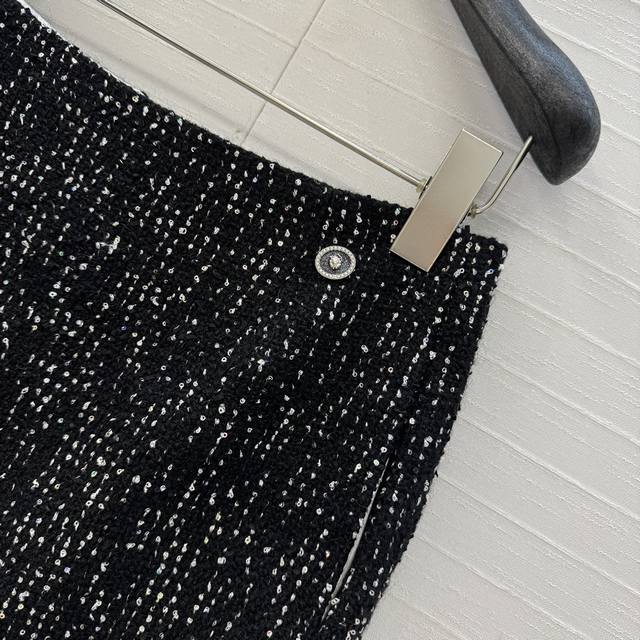 Original high-quality Chan*L 25A new arrival! French palace-style sequined black soft tweed skirt! A stunning, king-size style! A perfect match for a wealthy and beautiful woman, the high hem and pleated design elongate the legs. We recommend pairing it with an official pairing. Made from the original, custom-made tweed fabric, it's embellished with shimmering sequins. The workmanship is impeccable, and the quality is evident in the details! For those who know the product, come! Available in sizes 36-40! Size 36 measures 70cm waist, 90cm hips, and 37cm length.
