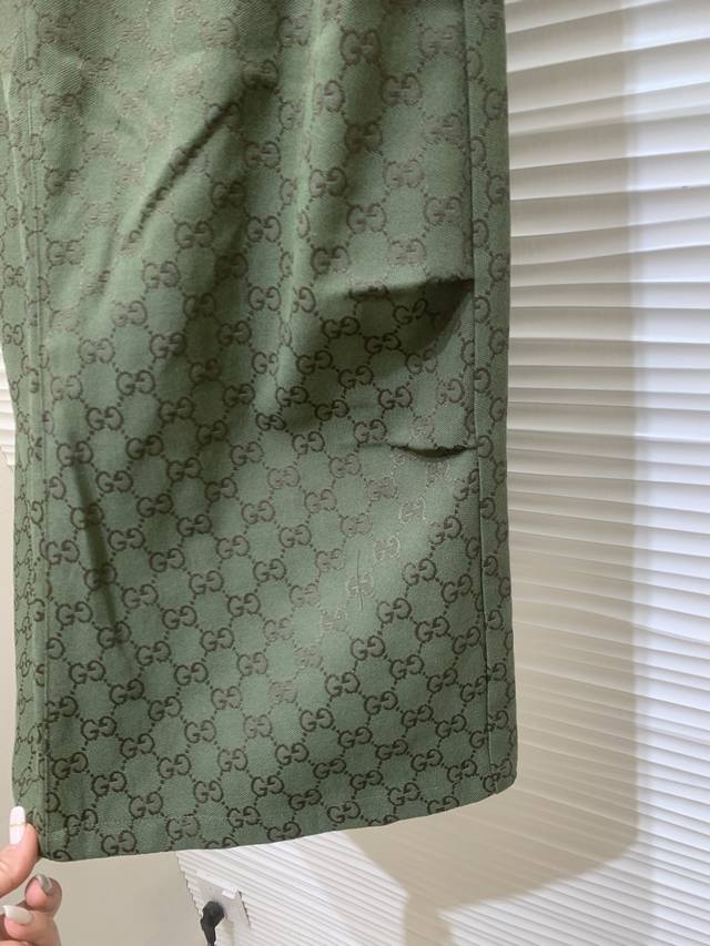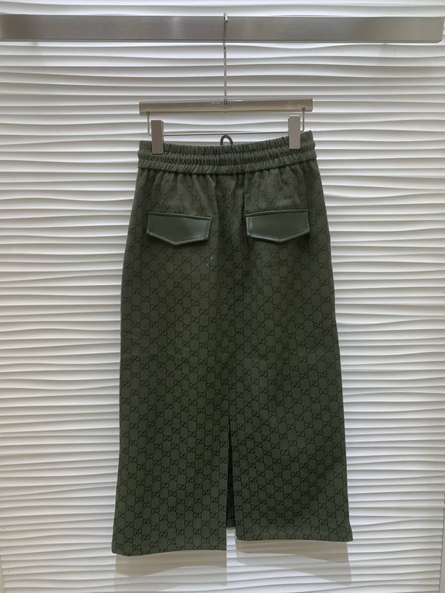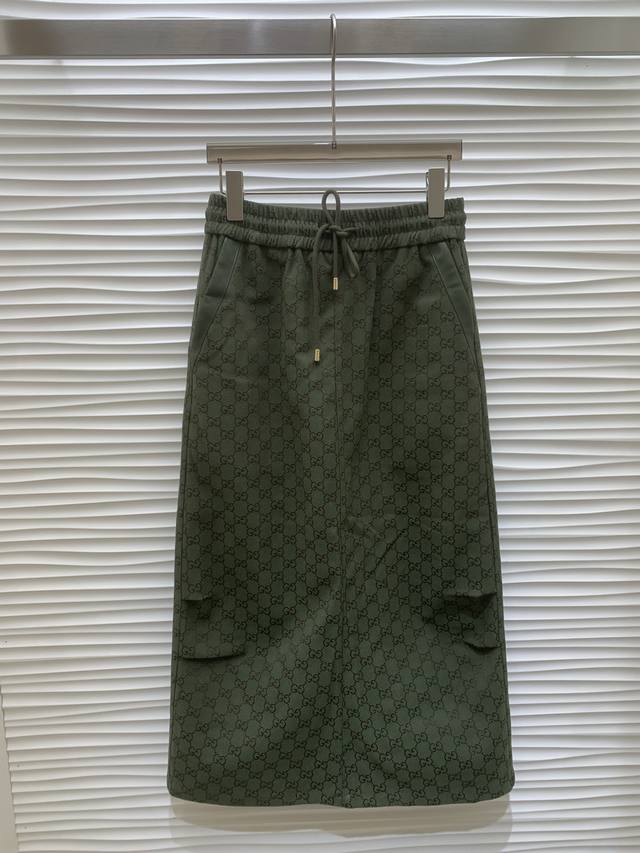 Original Gu.....2025 Early Fall New Fashion Jacquard Denim Drawstring Skirt. Custom-made imported jacquard denim, this high-waisted work skirt features an allover Double G jacquard pattern and leather accents at the pockets, highlighting its premium style. The straight-cut, hip-hugging design and slit hem elongate the legs, creating a relaxed and relaxed look. Original 2 colors. Size S, M,