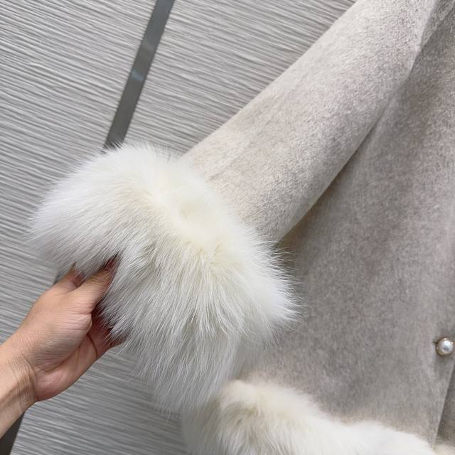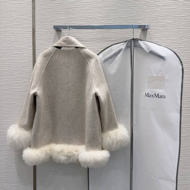 Original, high-quality, and highly-sold Max Mar*A double-faced cashmere coat for high-end babies. 30% cashmere, 70% wool, with detachable fox fur cuffs. Handmade! High-quality, elegant, and stylish, perfect for the urban woman with a queen-like aura. Sml S bust 106cm, length 68cm, shoulder and sleeve length 66.5cm. Includes dust bag 20