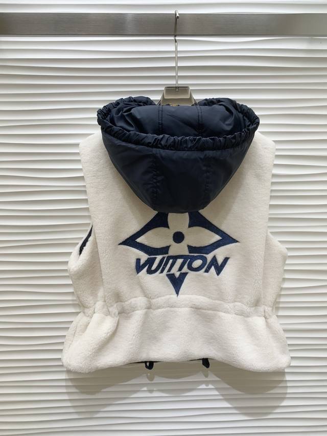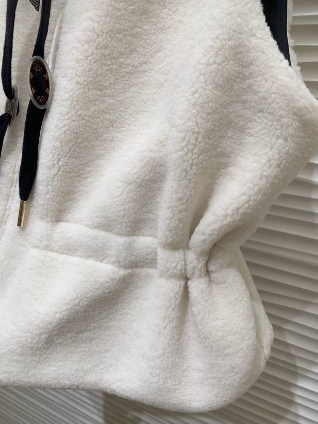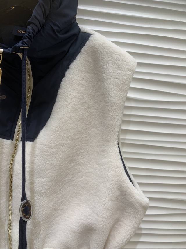 Original Ll......2025 Autumn/Winter New Fashion Teddy Patchwork Nylon Hooded Vest, Custom Yb Imported Teddy Plush Nylon Material, Double Collision Design Adds a Sense of Style, Back Adorned with the Iconic Four-Leaf Clover Logo Pattern to Highlight Brand Tone, Developed Fabrics, Hooded Drawstring Zipper Vest Cut, Breathable Mesh Lining, First Choice for Stylish Autumn/Winter Outfits. Original Version, 1 Color, Sizes S, M, L.