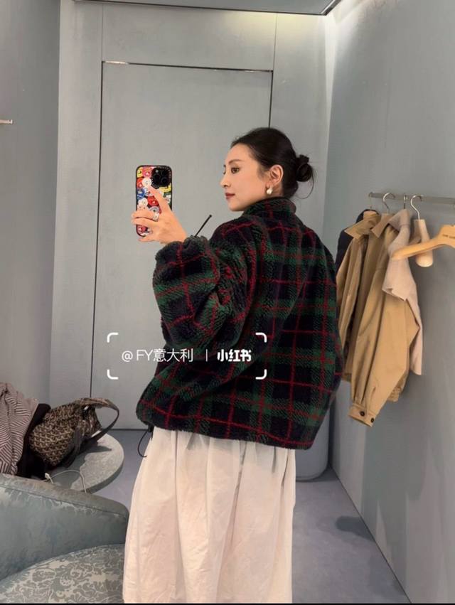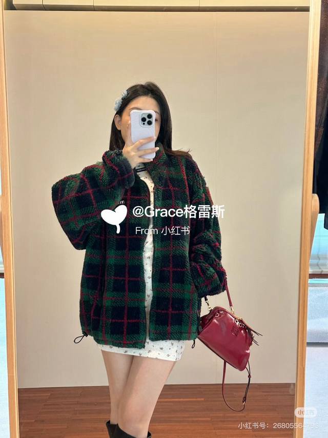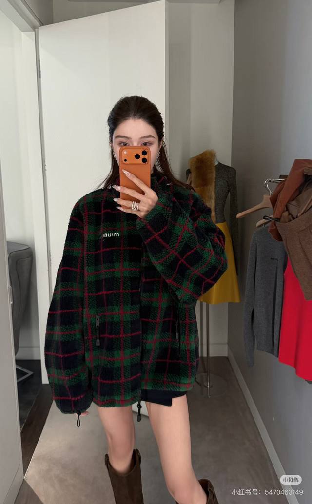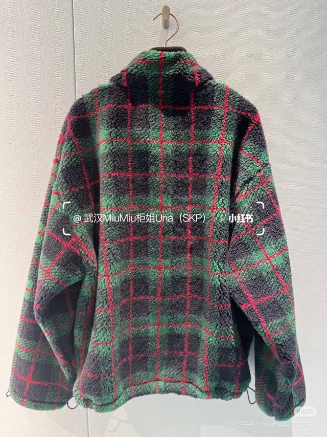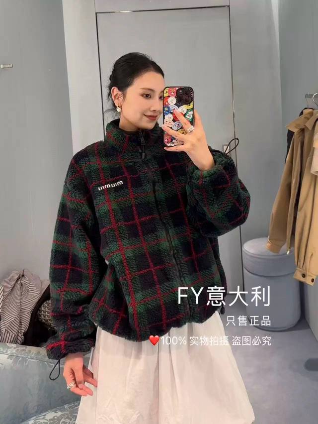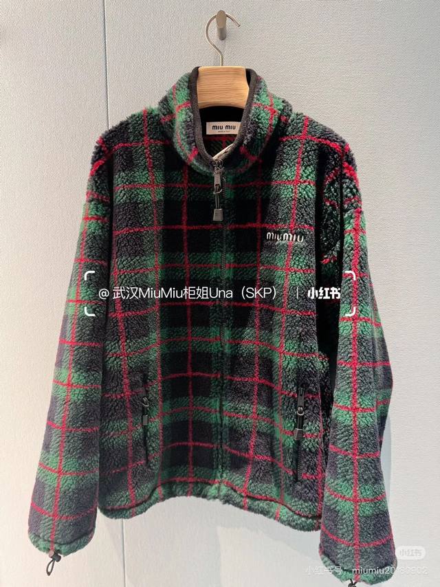 Original Mm 2025 Autumn/Winter New Fashionable Fleece Plaid Coat. Custom-made imported Yb fleece material for warmth, comfort, and protection against the cold. The black, green, and red plaid texture, combined with an adjustable zipper closure, adds a sense of style and layering. The iconic embroidered logo on the chest highlights the brand's identity. Features a stand-up collar and zipper. The coat's cut is perfect for layering in autumn and winter. Original version, 1 color, sizes S, M, and L. (