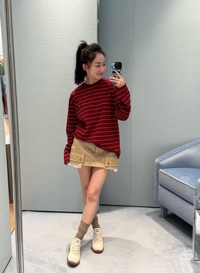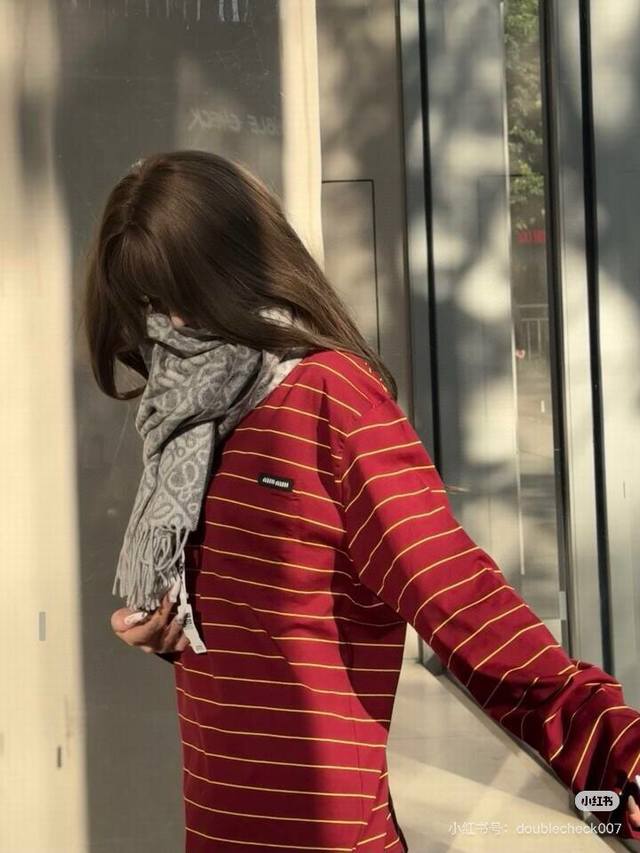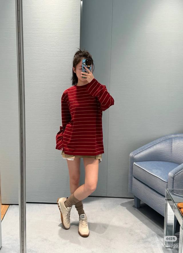 Original Mm. 2025 early autumn new fashion striped long-sleeved T-shirt, casual and versatile classic striped color, classic patch logo patch embellishment, versatile and suitable for everyone, loose version, unisex style, original 1 color, size Sml.