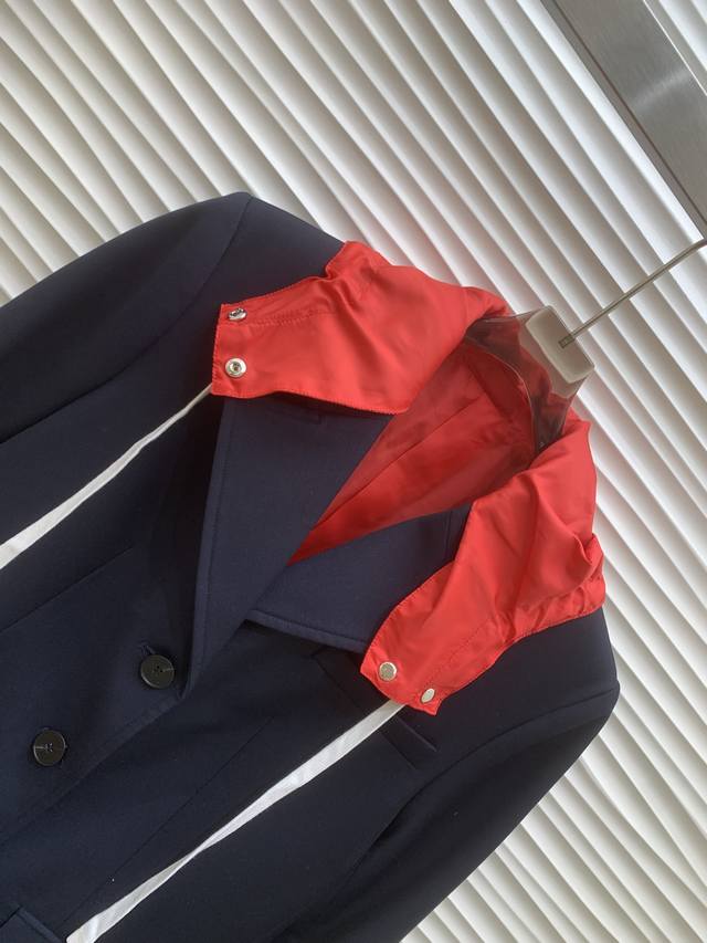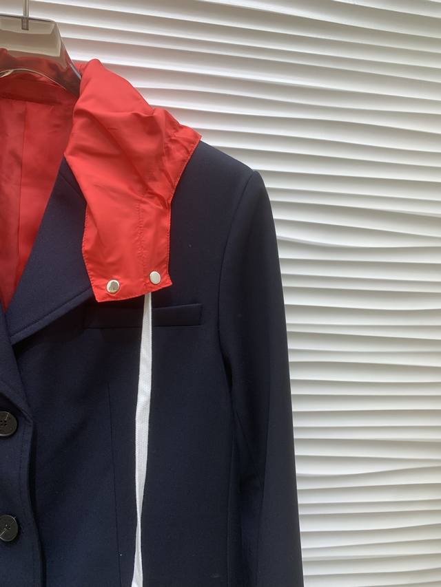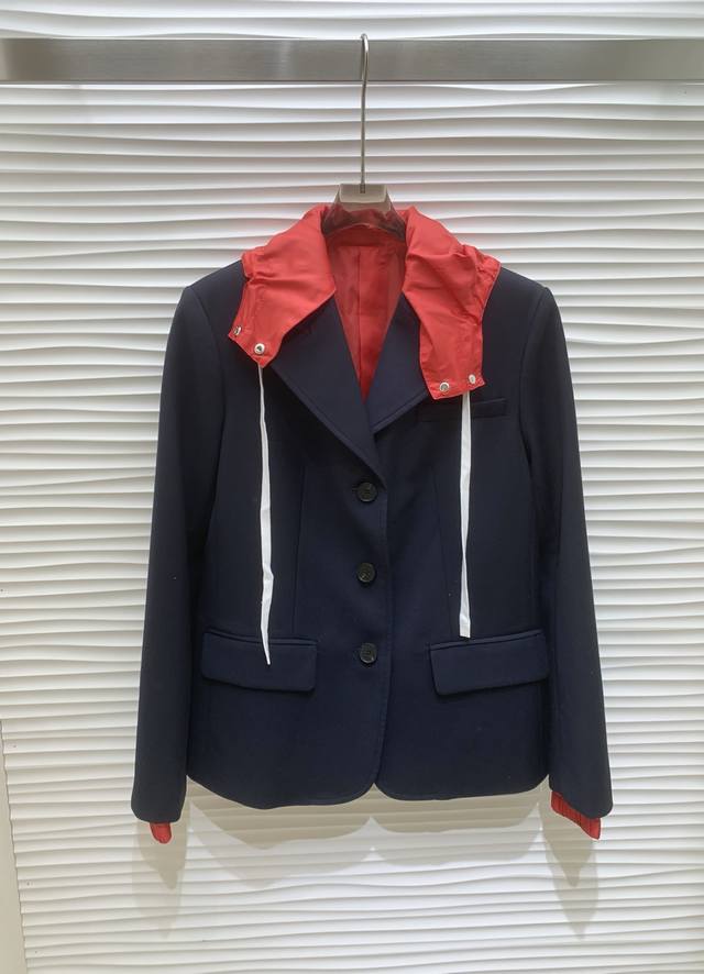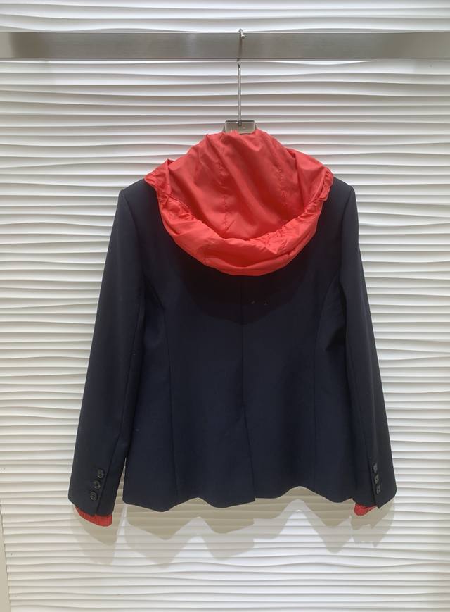 Original Mm 2025 Early Fall new fashion logo zipper hooded two-piece blazer, high-end quality, fashionable color matching, sweet or savory sporty girl style! Custom wool fabric is lightweight and comfortable, with a superb texture and versatile texture. It looks stunning on everyone. Perfect workmanship and quality can be seen in the details. Original one color, size Sml.