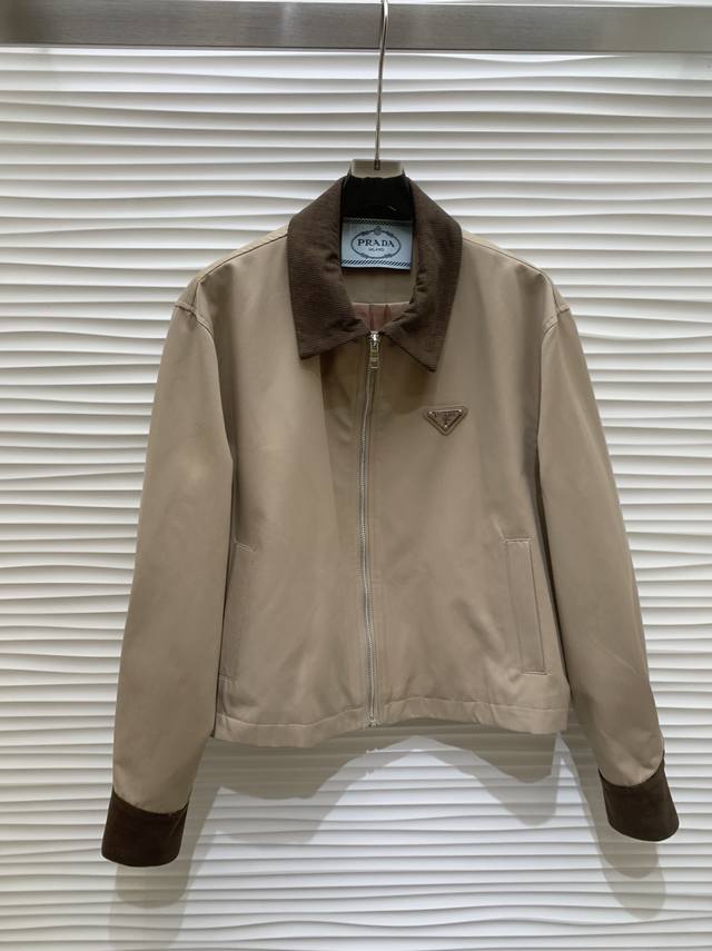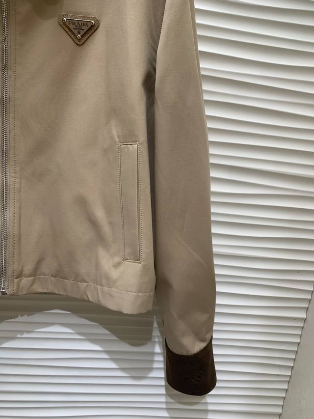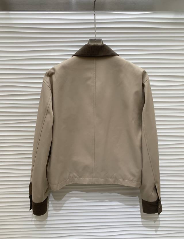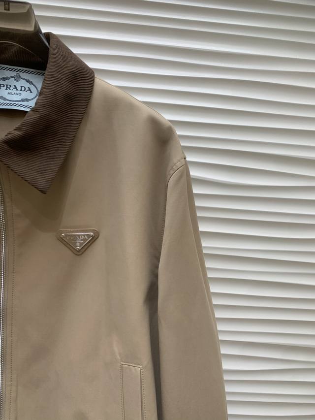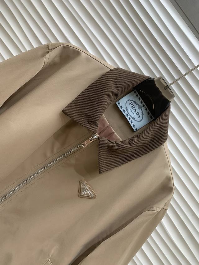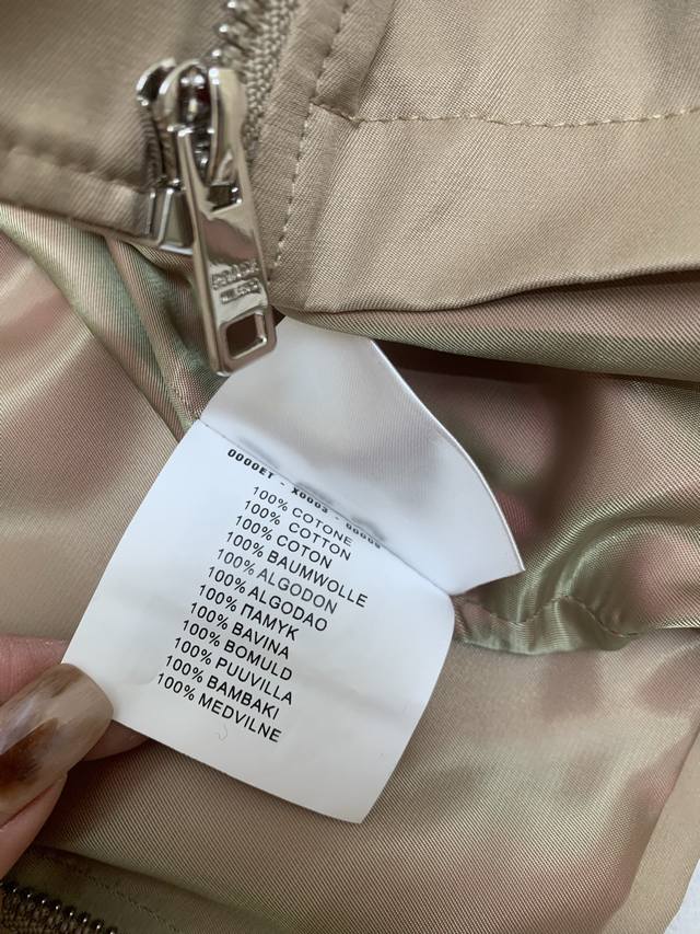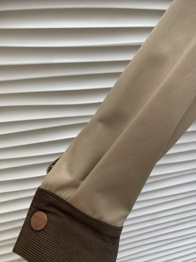 Original Pp......2025 Autumn/Winter New Fashionable Lapel Trench Coat, custom twill cotton trench coat material, delicate texture, excellent drape, zip-up closure, dropped shoulders, lapel, loose A-line design, light khaki body, contrasting colors at the cuffs and collar for rich layering, suitable for autumn and winter casual wear in the style of Merriam-Bern. Metal logo embellishment on the chest, details highlighting brand style, relaxed and fashionable look. Original version in 2 colors, sizes S, M, L.