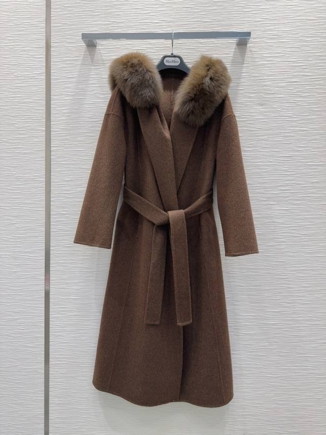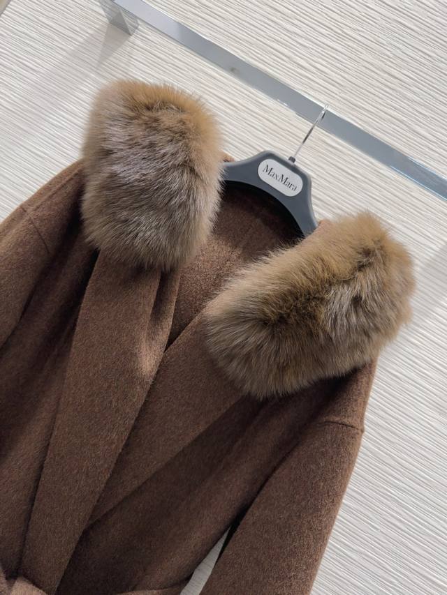 Original quality channel hot goods Max Mar*A double-faced cashmere coat for high-quality babies 30% cashmere + 70% wool + detachable fox fur Purely handmade! High quality, temperament goddess, elegant and fashionable urban women with queen aura of charm Sml S Length 119 Bust 108 Shoulder Width 59 Sleeve Length 47 With dust bag + 20