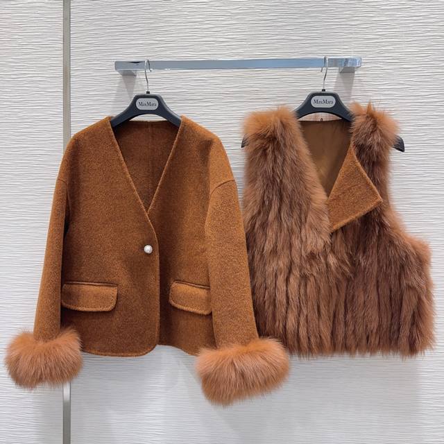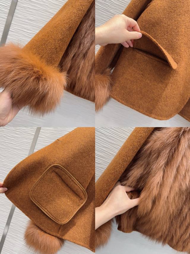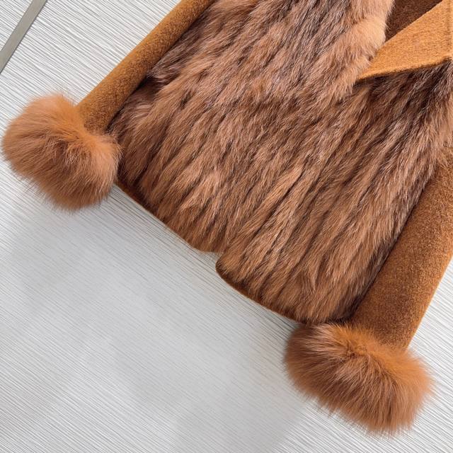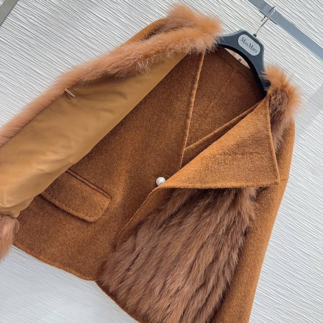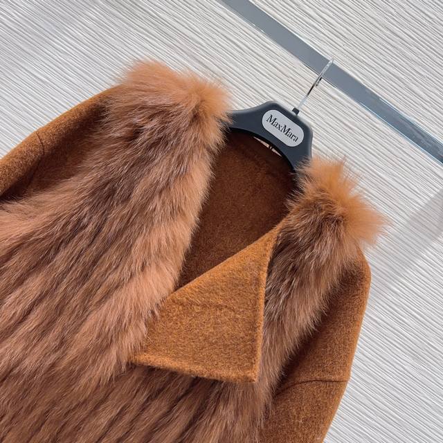 Original quality channel hot goods Max Mar*A double-faced cashmere coat for high-quality babies 30% cashmere 70% wool detachable fox fur purely handmade! High quality, temperament goddess, elegant and fashionable urban female charm queen aura Sml S length 59 chest 106 shoulder width 58 sleeve length 45 four-digit with dust bag 20