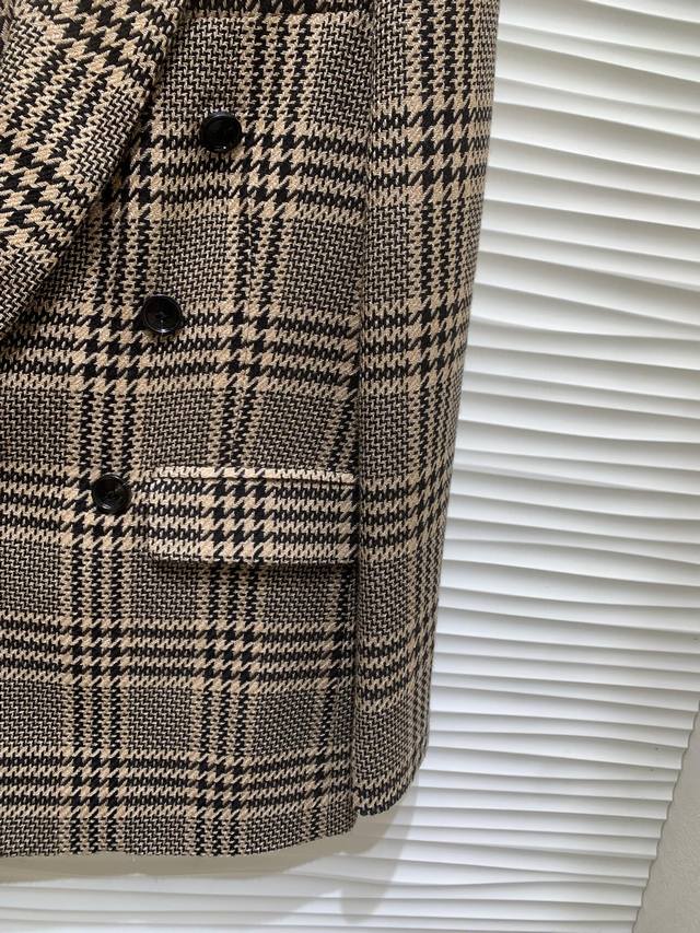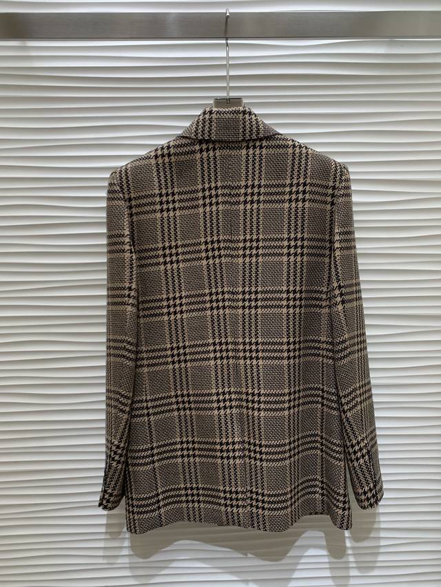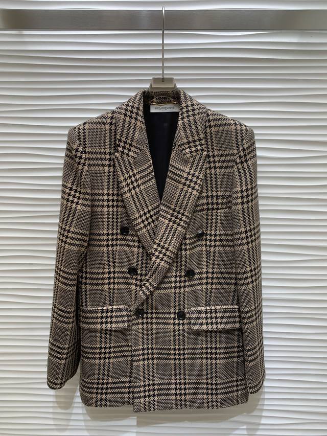 Original YSL 2025 Autumn New Fashion Retro Plaid Oversized Suit Jacket, made with custom-woven wool plaid fabric, superb texture~ Simple and sophisticated, stylish and elegant, with padded shoulders for a confident look. The silhouette is just right, timeless and timeless . Excellent details and texture, looks sophisticated and high-end. Original version, 1 color, sizes S, M, L.
