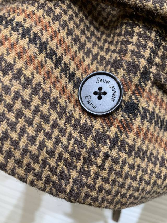 Original YSL 2025 Autumn/Winter New Fashionable Wool Plaid Lapel Short Coat, classic double-breasted design, belted waist, custom wool fabric, logo buttons, very stylish, high-end quality, original color, sizes S, M, L, DDD