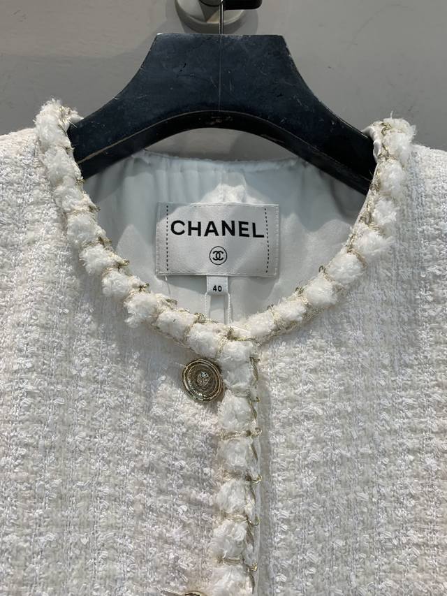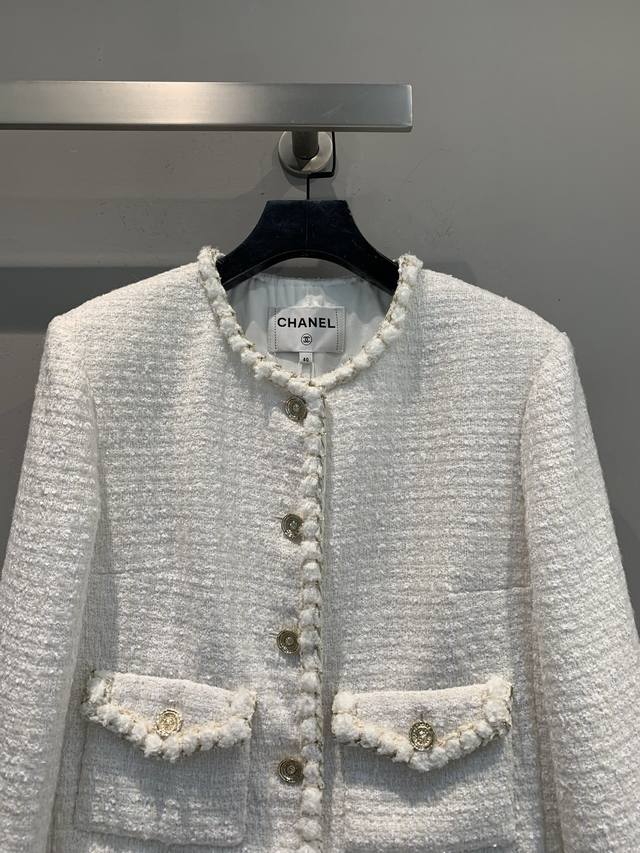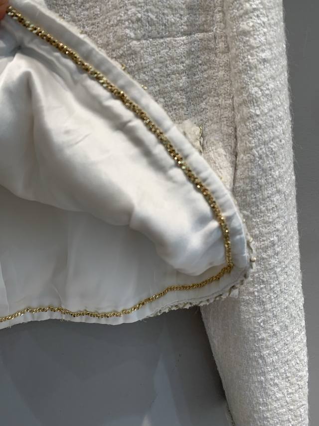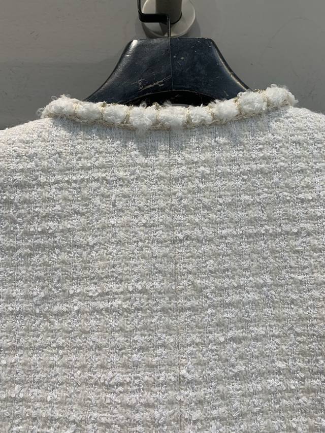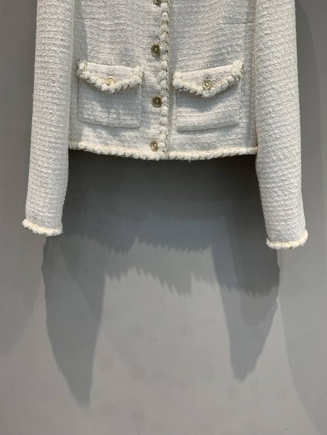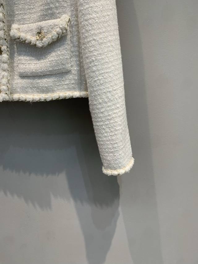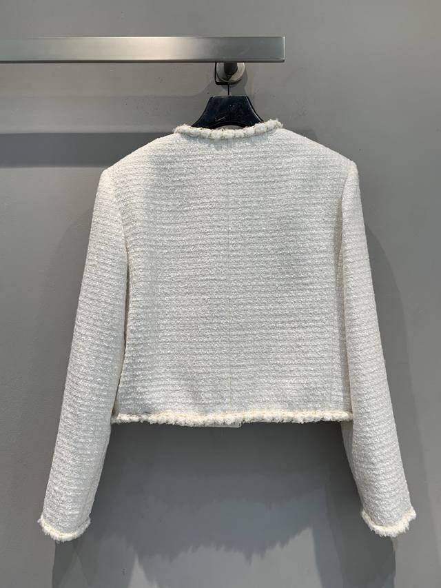Originally developed by C-brand for their 2025 Early Fall collection, this new, handcrafted, round-neck tweed jacket is a must-have. This classic tweed jacket exudes an innate elegance and sophistication. The 100% silk lining feels instantly comfortable against the skin, creating a luxurious, indulgent feel. The short cut optimizes proportions. Paired with a skirt, it creates a sophisticated afternoon tea look. Paired with jeans, it's both stylish and stylish. Exquisite detail is woven into every inch of the fabric, making this a must-have. Sizes: 36, 38, 40.