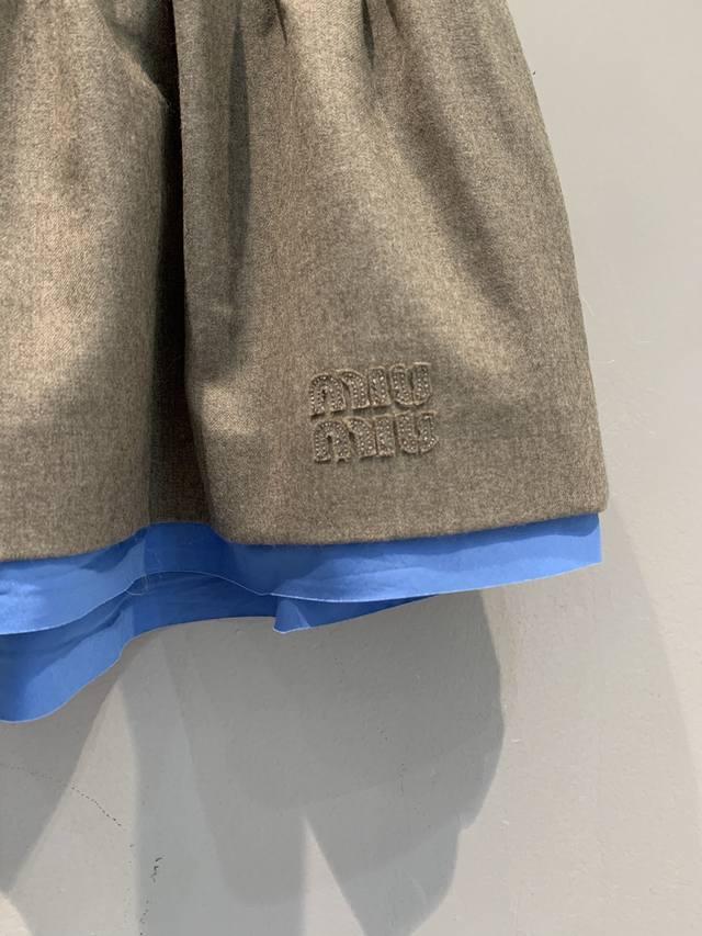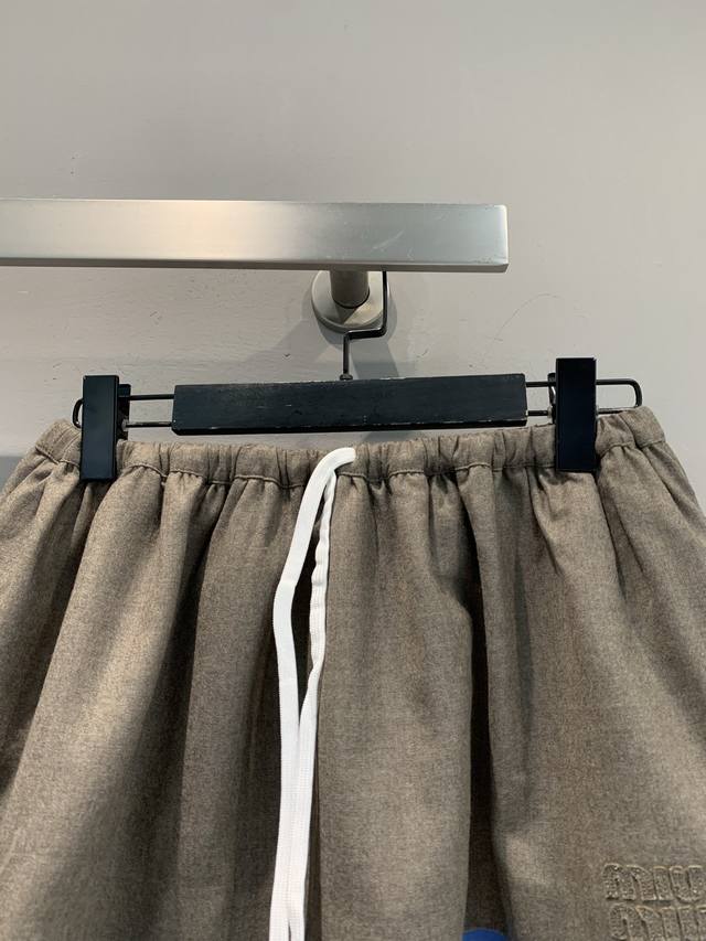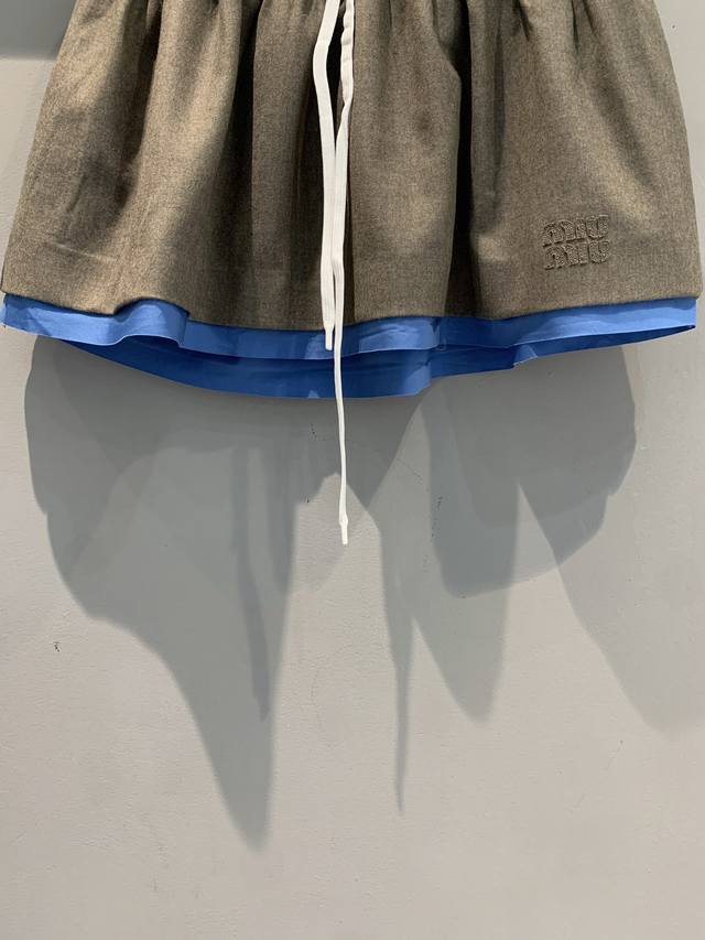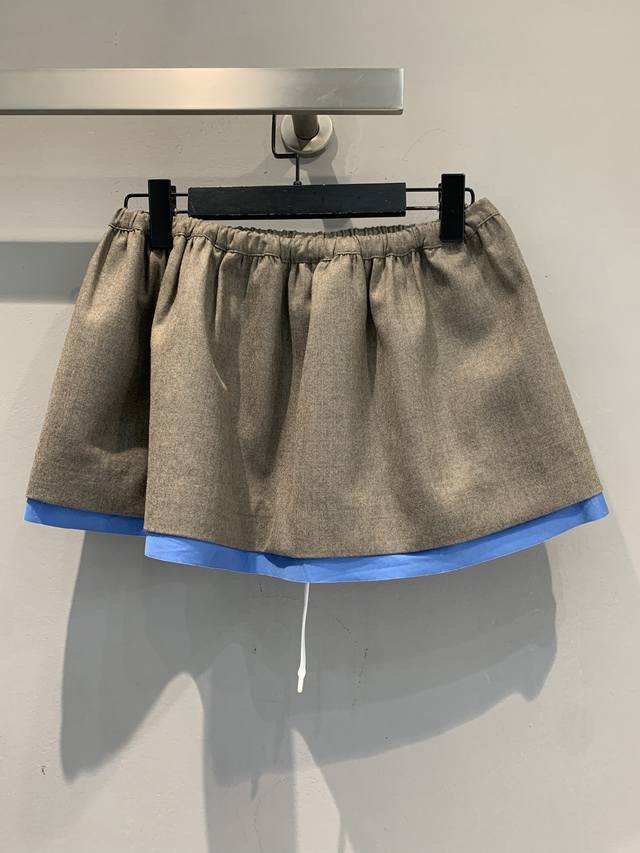 Originally developed by Miumi*, this 2025 early fall faux two-piece lace-up wool skirt. Made from imported sheep wool, it boasts a delicate texture and a crisp silhouette. The light brown base and electric blue lining create a subtle contrasting effect, creating a relaxed and fashionable look. The floral silhouette conceals body and elongates the legs. The drawstring design accommodates all waist sizes. Pair it with a crop top for a relaxed, relaxed look, or pair it with a blouse for a date for a sweet and sassy look. This skirt is a must-have for all styles. Sizes Sml