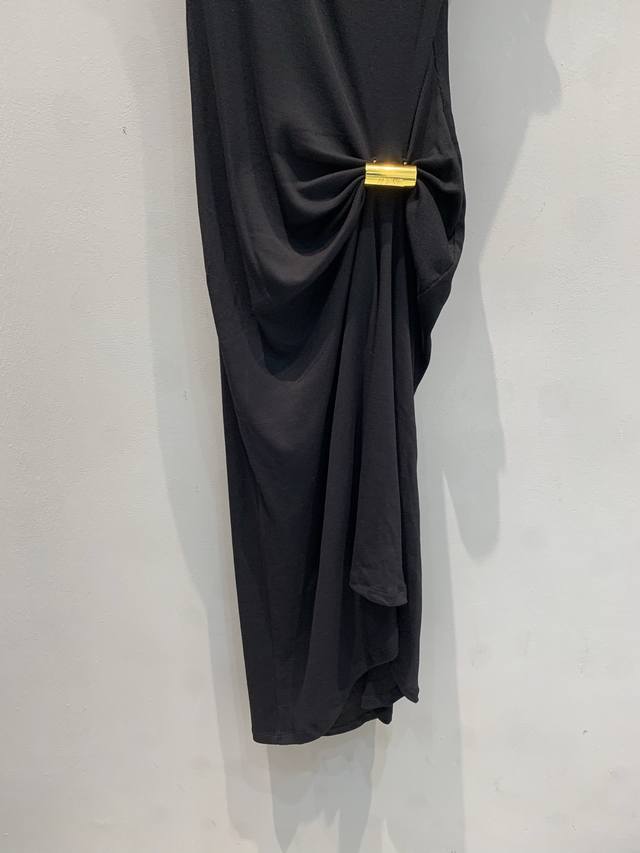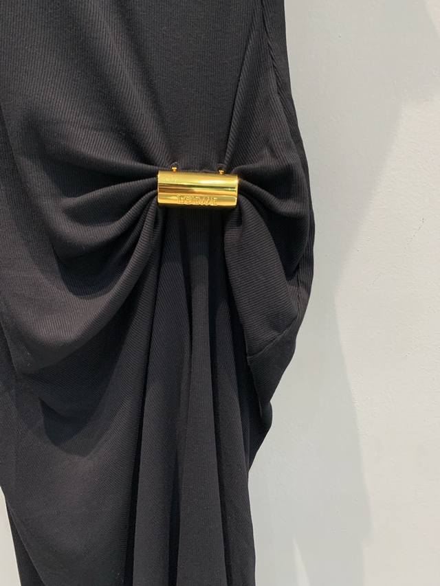 Originally developed from Loew's 2025 Early Fall collection, this stylish, retro, gold-buttoned irregular knit dress. This clean, sleeveless silhouette is perfect for all seasons. The asymmetrical, pleated metal buckles add a finishing touch, framing your figure as you walk. A stylish accent for evenings and dates, this classic black dress, combined with the brand's DNA, is a timeless, stylish choice. Sizes S, M, L, and D, D, D.