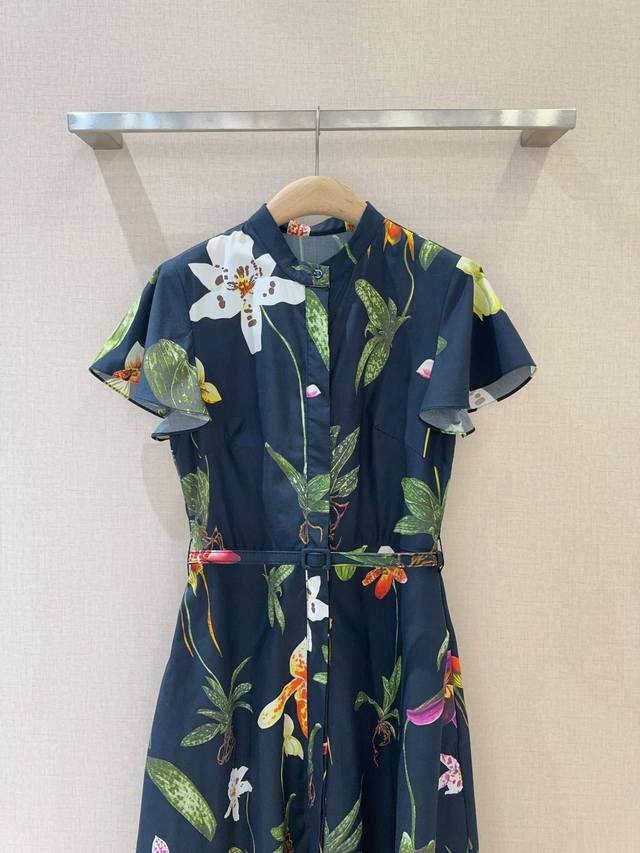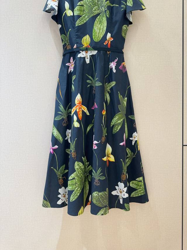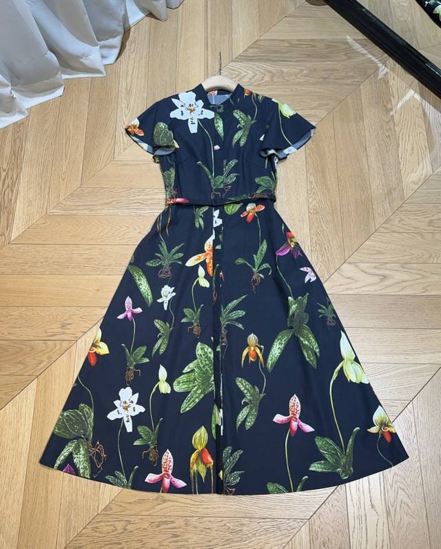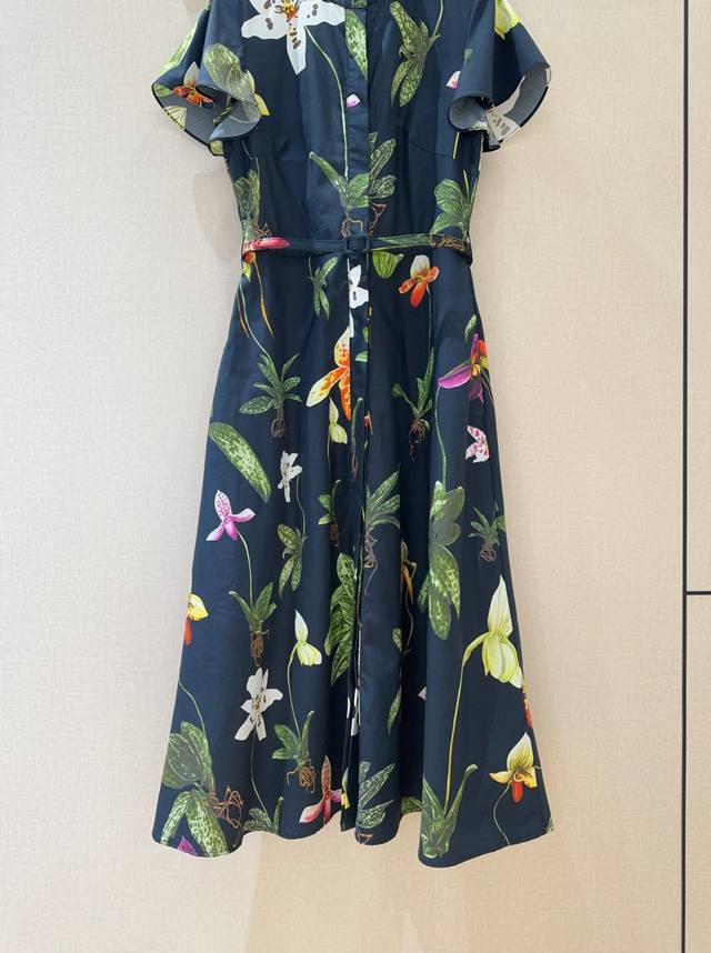 Oscar De La R*E*N*T*A DDD 2025 Early Spring New Arrival DDD Comfortable cotton, with nature and flowers as its core, organic color palette, spliced ruffled sleeves, stand collar, button front closure, high waist and full skirt to highlight a goddess-like figure, two side pockets and a detachable belt. Quality is in the details! DDD Size: Ml DDD
