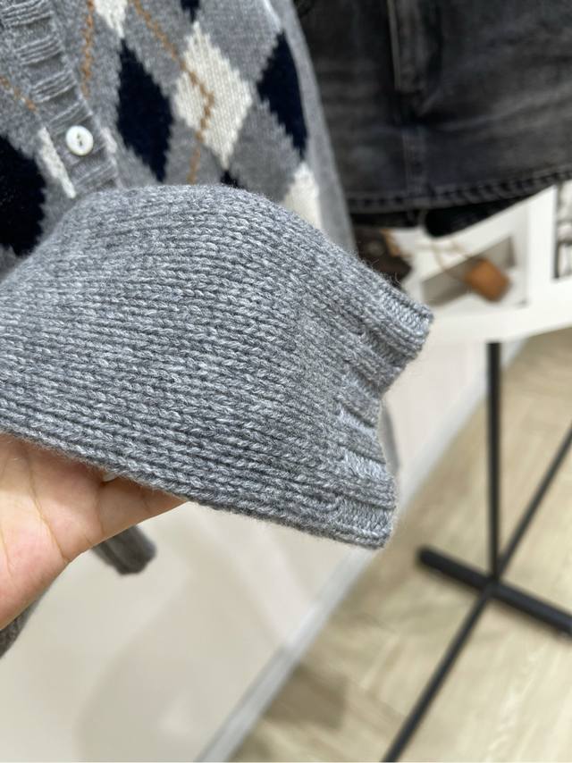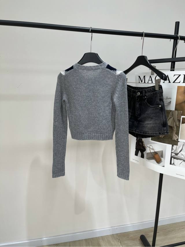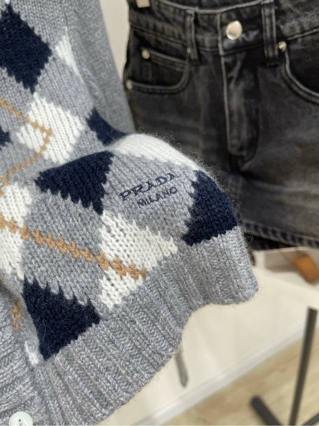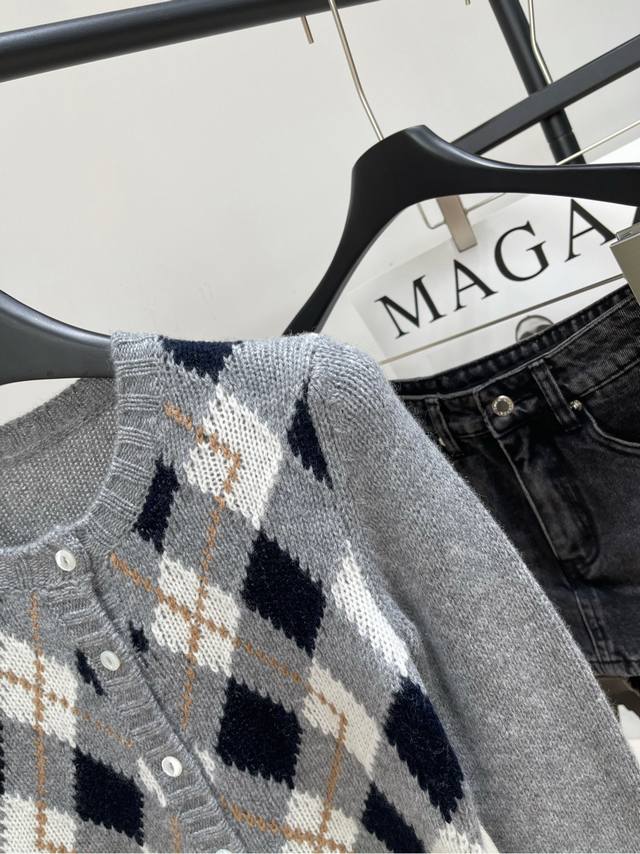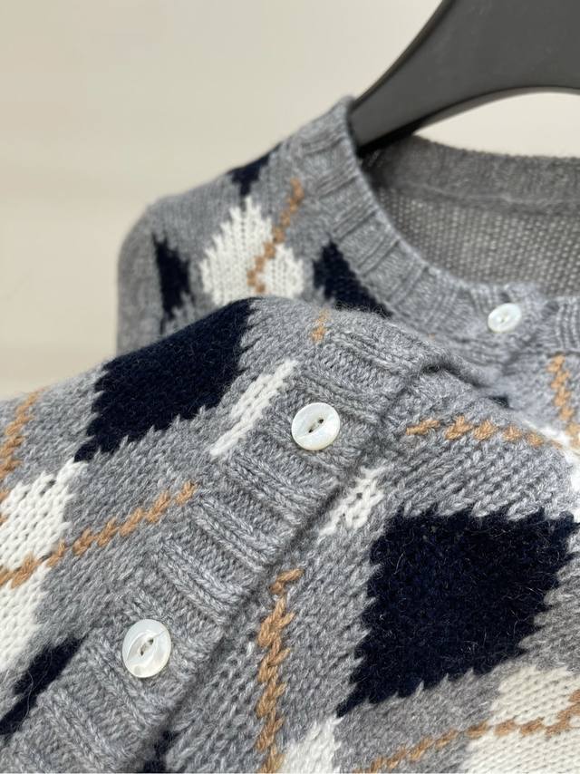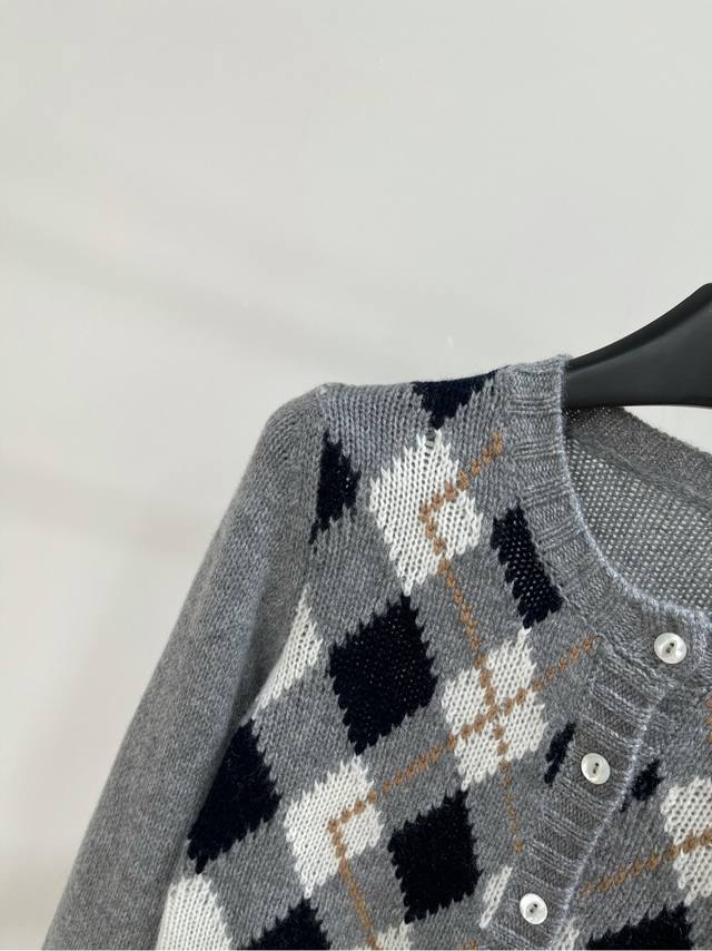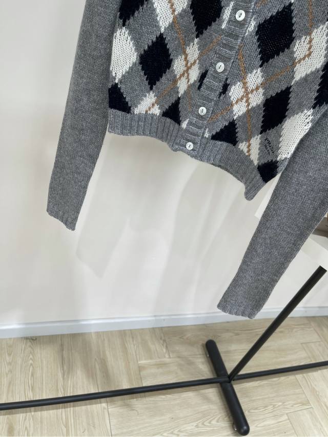 P Grey Square Plaid Cashmere Short Cardigan