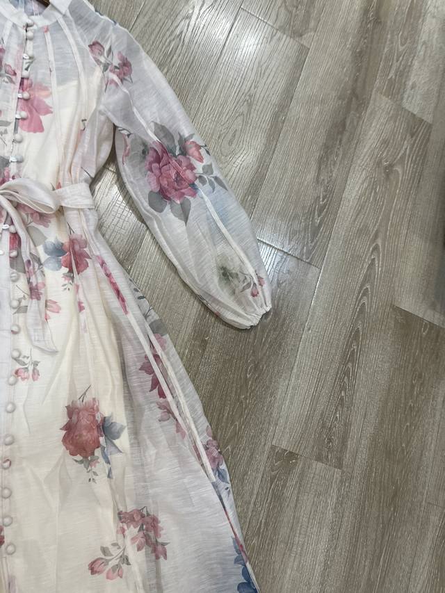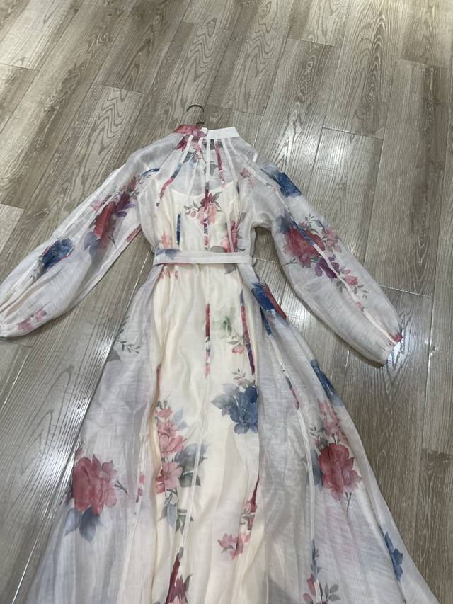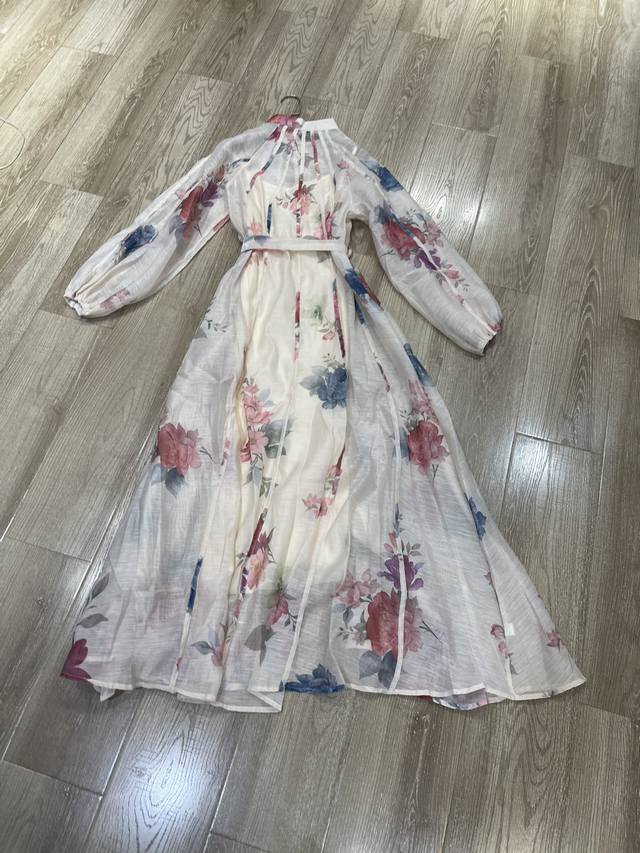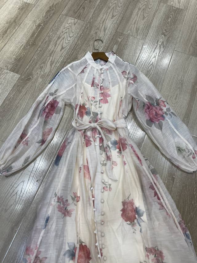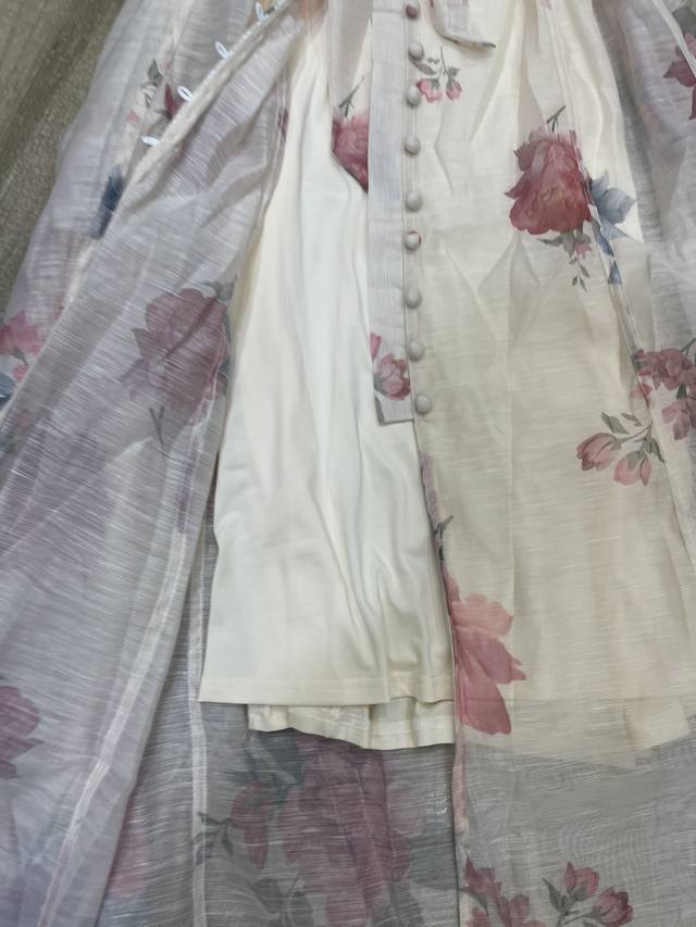 Palace style catwalk design with hanging flowers, long sleeves, single-breasted