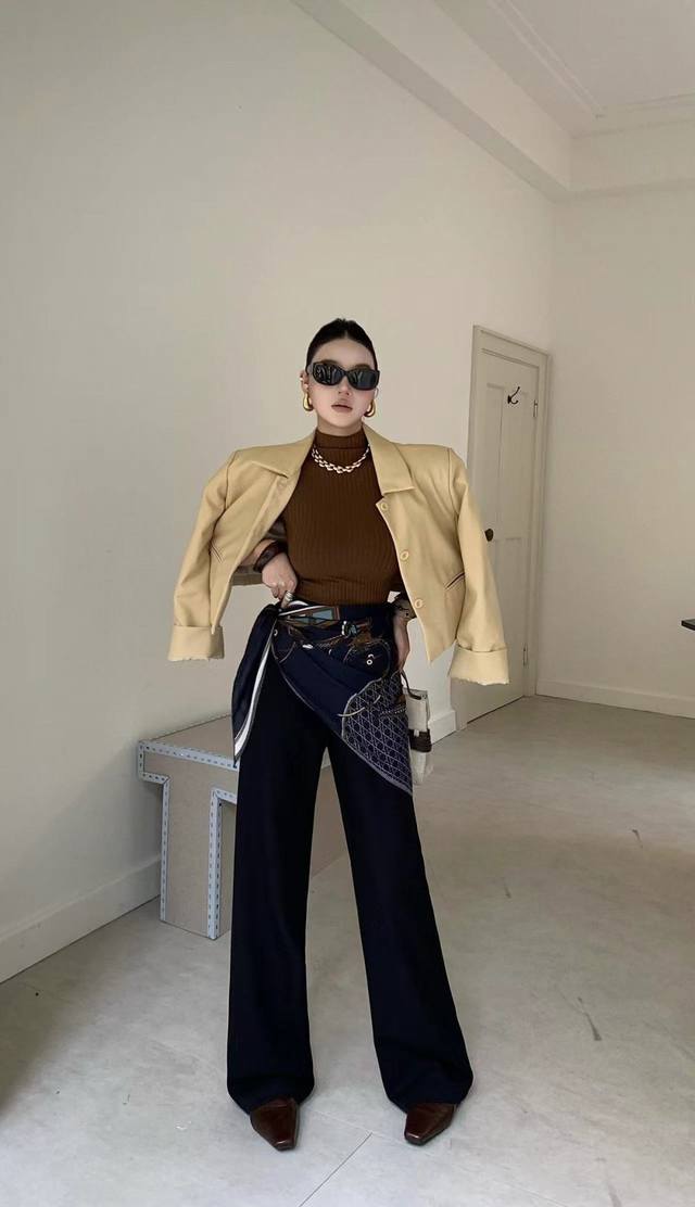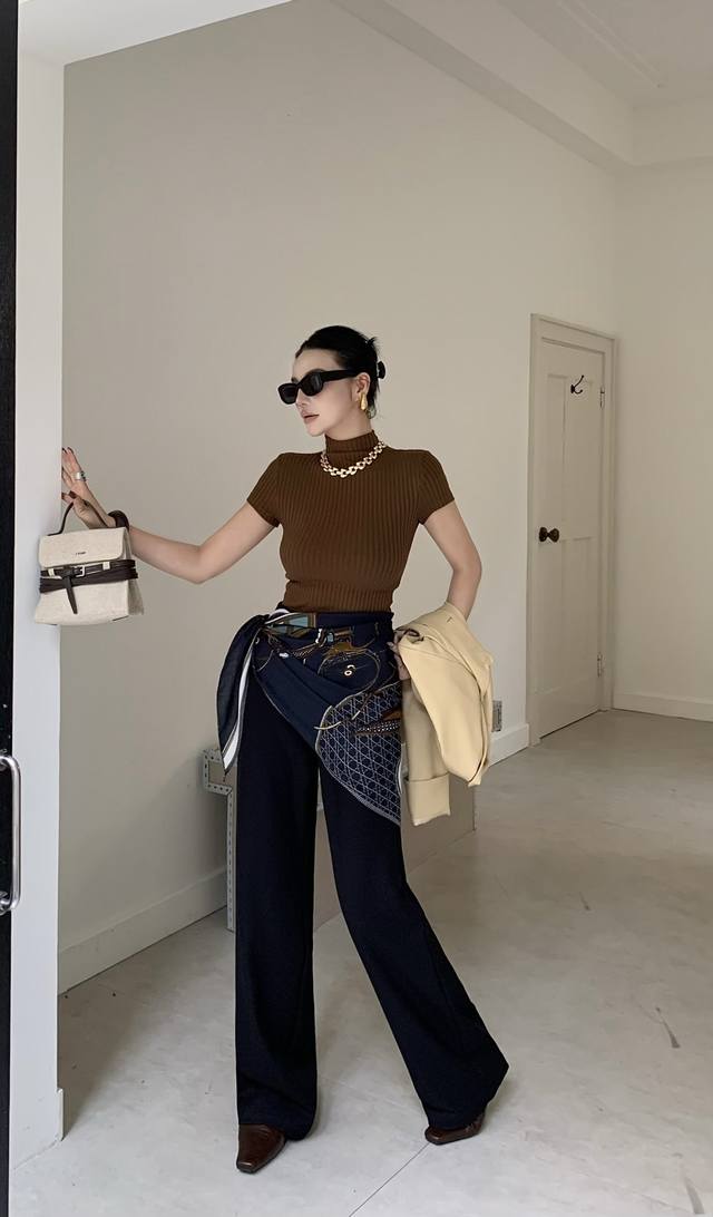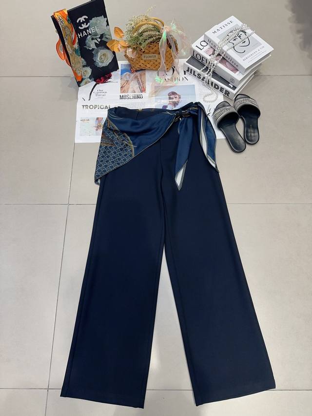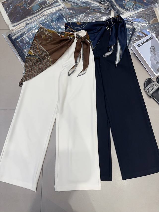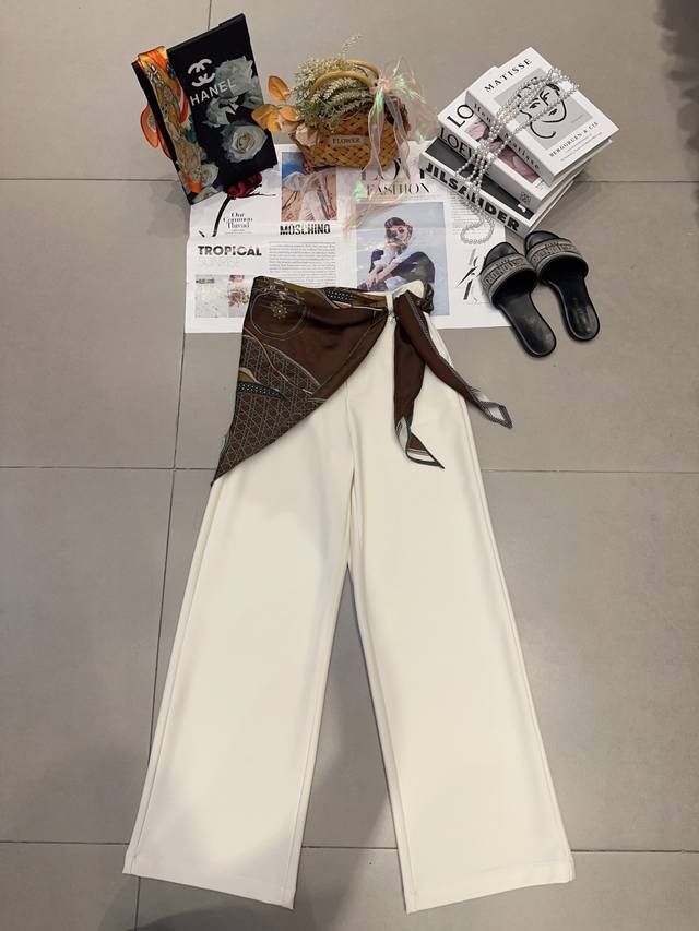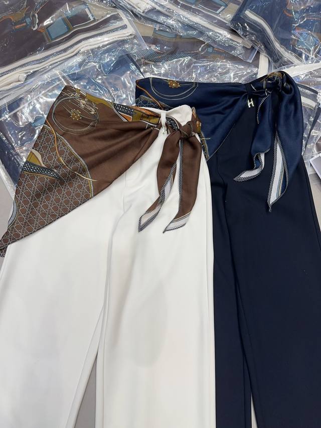 H-designed silk scarf wide-leg pants The wide-leg version has a great atmosphere, and the drape feels neat and casual. The silk scarf waist ornament is the soul highlight. The exquisite print and unique knot break the monotony and inject a literary style into the overall high-end wear. The black and beige colors are classic and versatile, and the looseness carries the genes of big brands. "Effortless exquisiteness" is a treasure single that highlights the unique aesthetic. Smlxl