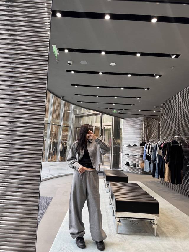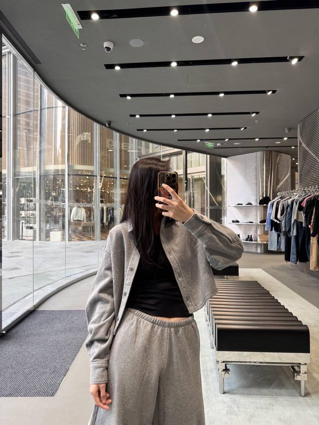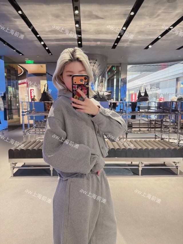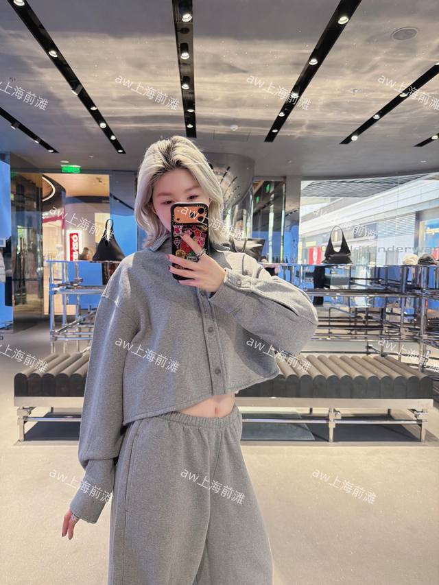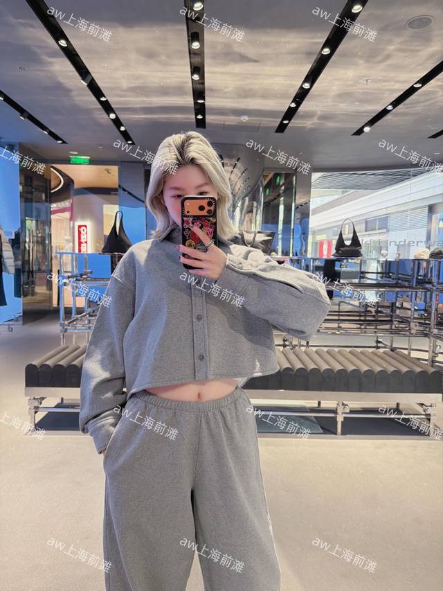 Pants p Ddd Shirt p Alexand*R Wang 25Fw Autumn/Winter New Button-Down Short Shirt + Gray Sweatpants Set | Exclusive Yb Development! High-Quality Production! Crafted from soft and skin-friendly knit fabric, the short shirt features a simple button-down design with a clean, cropped cut that accentuates the waistline for a more streamlined look. Paired with matching loose-fitting sweatpants, the drawstring elastic waistband accommodates various body types, and the draped wide-leg design flatters the legs. The overall gray tone exudes a casual street style, and the set design balances fashion and practicality, easily creating a relaxed and cool everyday look. Available now in SML DDD