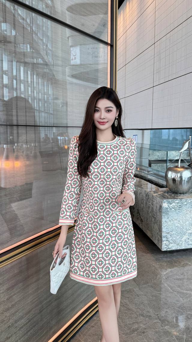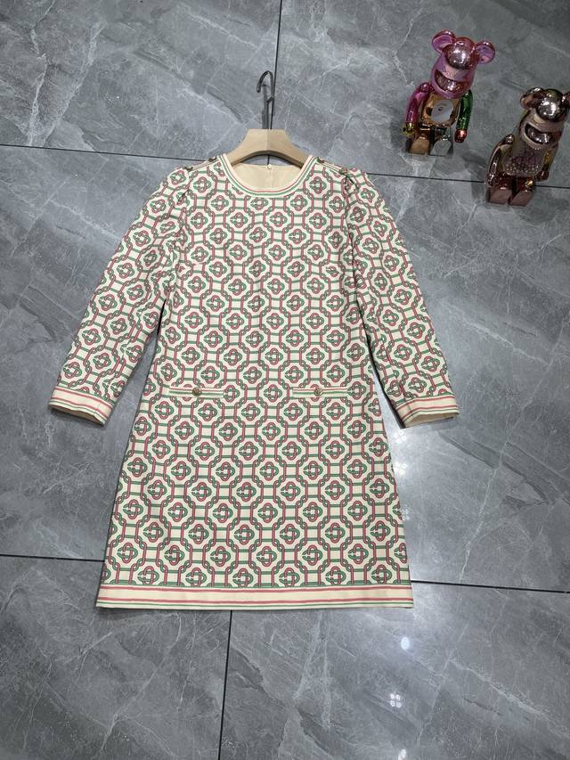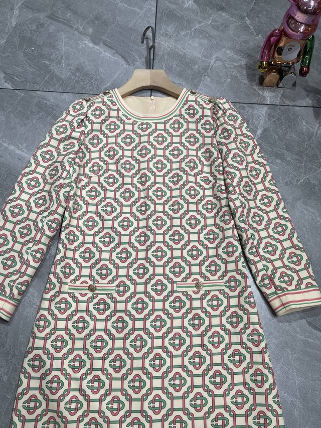 Picture color S-Xxl 5 sizes - early spring new high-end atmosphere heavy fashion positioning colorful ring buckle chain printing slimming temperament A-line dress heavy fashion printing, A-line skirt, button pocket embellishment, fashionable and tall, elegant and noble, super fairy and beautiful, a favorite one~~~S size bust 88 waist 84 shoulder width 367 skirt length 87