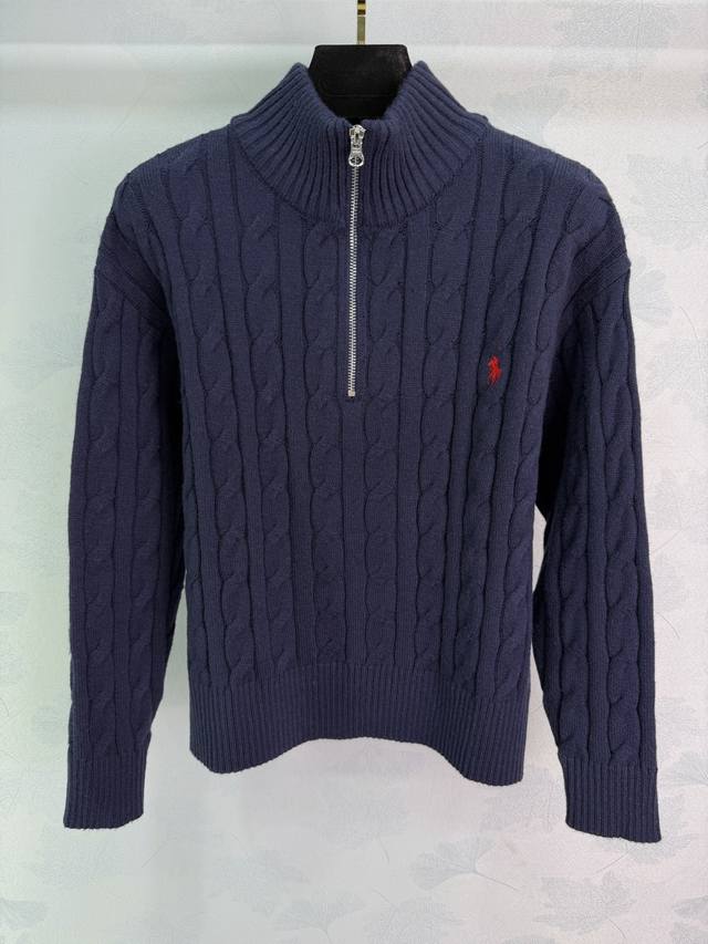 po*2025 Autumn/Winter New Style Collared Half-Open Long-Sleeve Sweater! Made with custom wool yarn, soft and skin-friendly with a luxurious feel. The half-open zipper cut is stylish and casual. The horse emblem embroidery on the chest instantly elevates the brand's style. The all-over cable knit design combined with ribbed trim adds a touch of vibrancy. An essential for autumn/winter outfits, perfect for everyday casual wear. Relaxed and stylish! 4 colors, 3 sizes: S, M, L, T226B. DDD