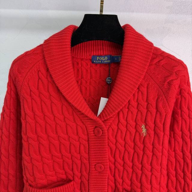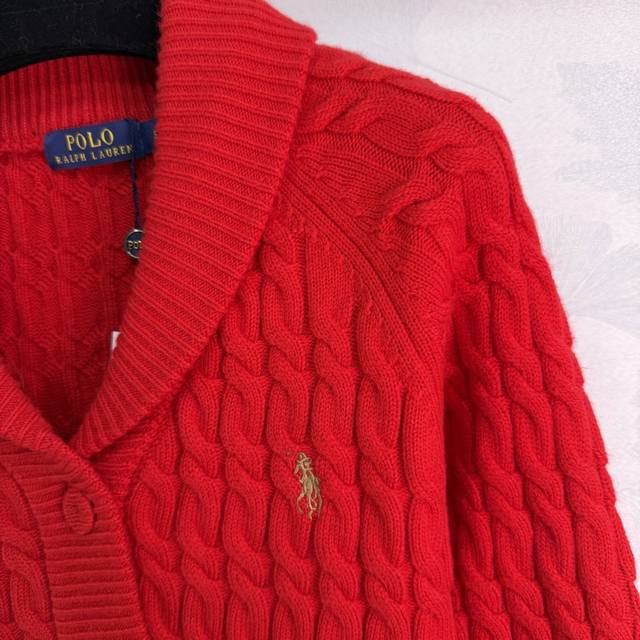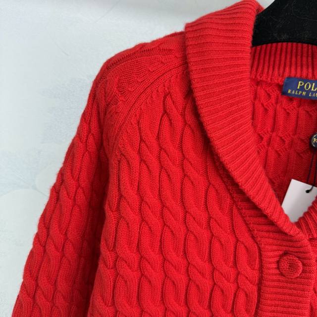 / po*26 Early Spring New Red Cable Knit Cardigan, Classic Cable Knit Texture + Sha
