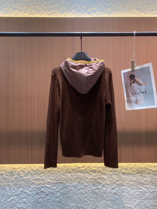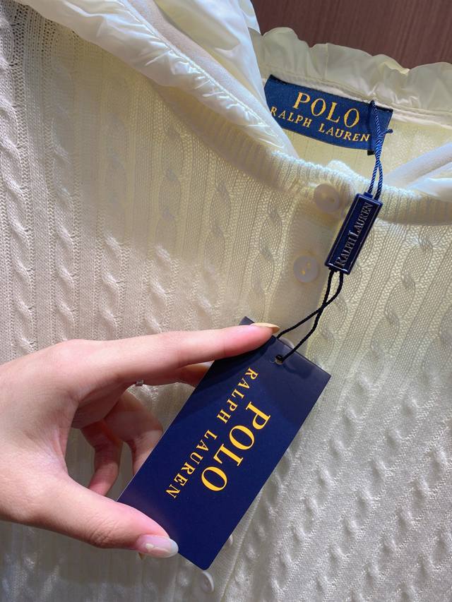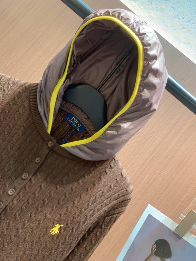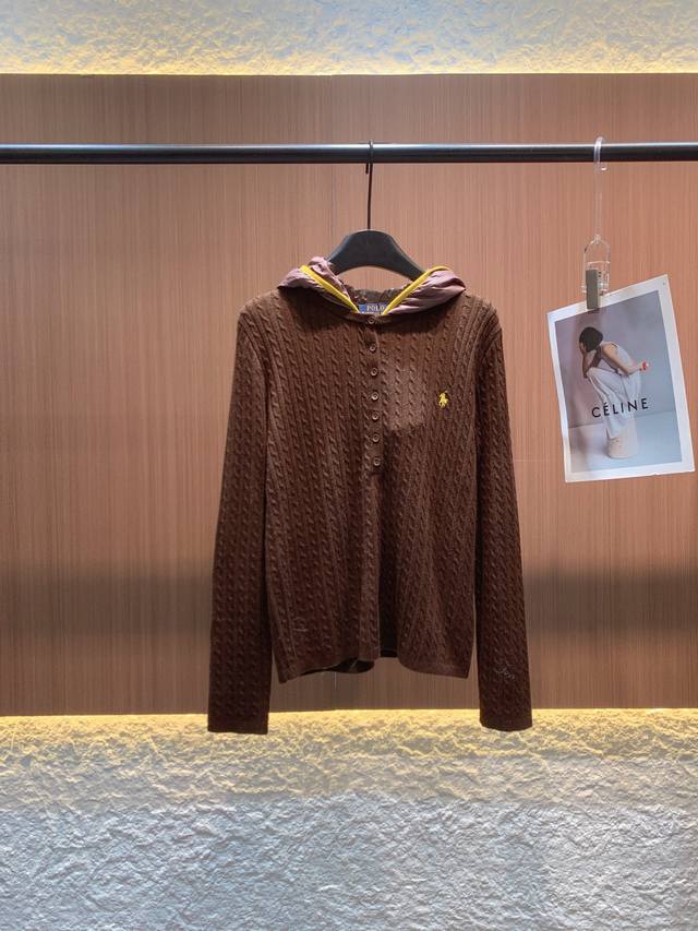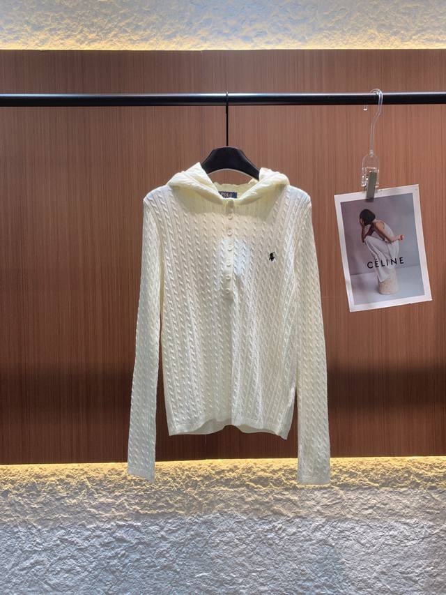 Polo 2025 Fall/Winter New Arrival. 70% wool blend, cable knit texture is delicate and warm. Available in off-white and brown. The hooded design adds a casual feel, while the half-open button closure is chic and practical. The small horse logo embroidery on the left chest highlights the brand's quality. The slim fit flatters the figure, suitable for everyday casual wear or a touch of retro style. A stylish piece that combines comfort and style in your autumn wardrobe~ Sml